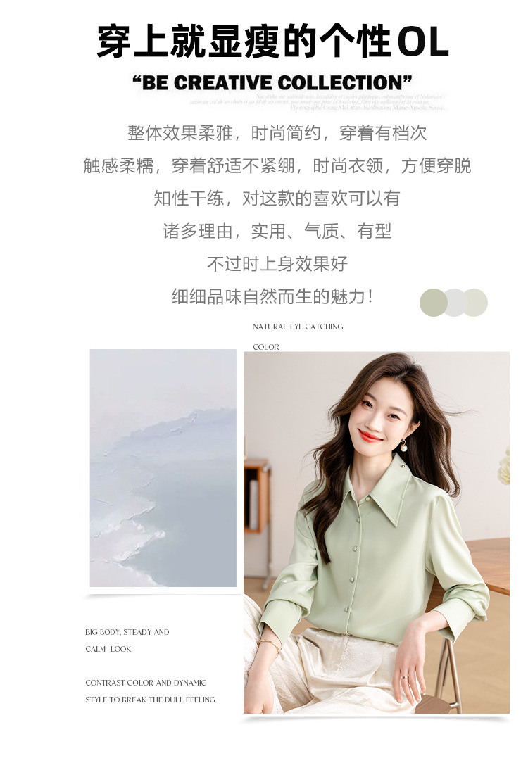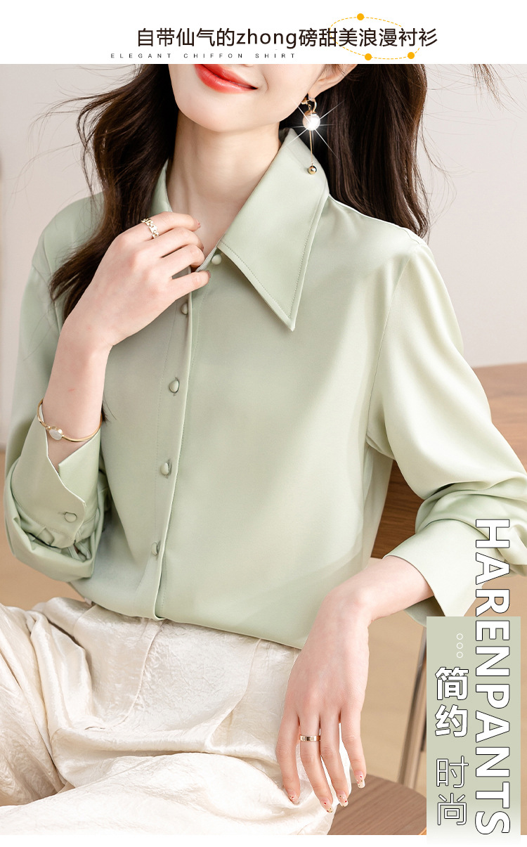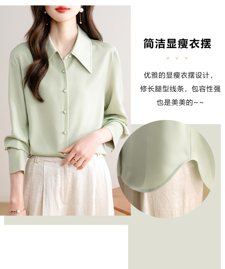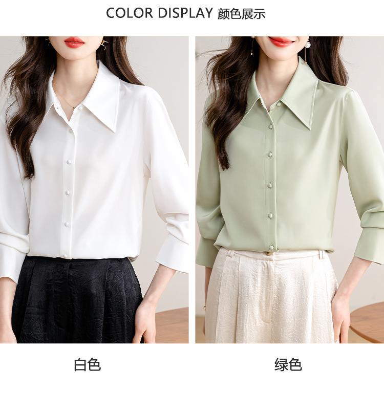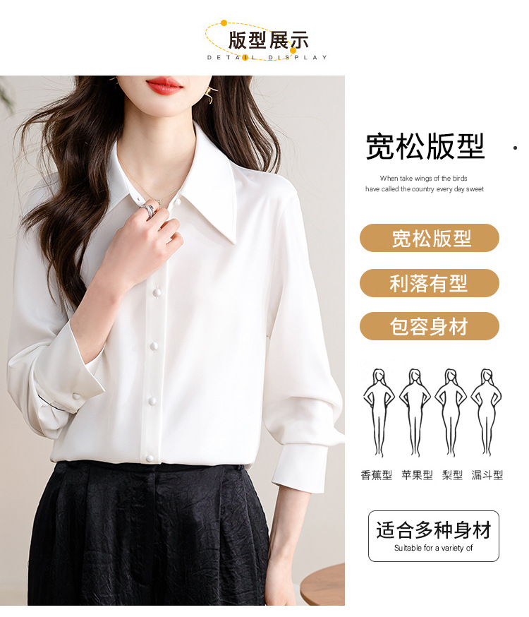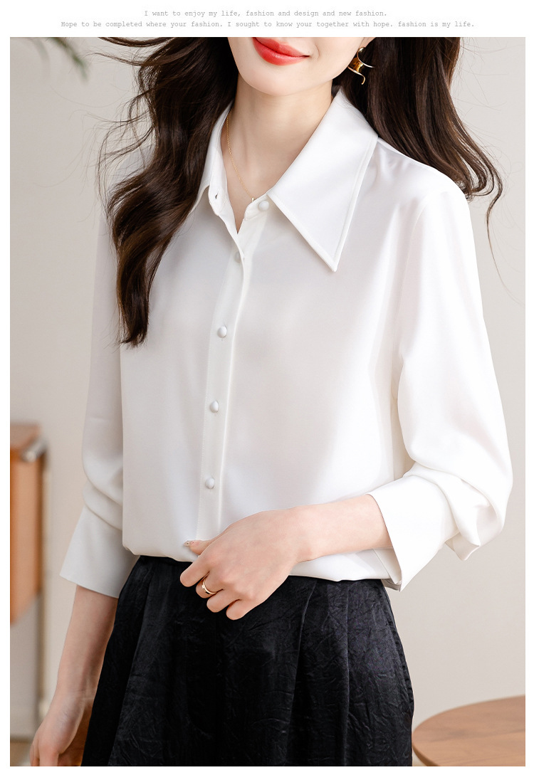 새로운 봄과 여름에 2024 실제 촬영 흰색 긴 소매 새틴 셔츠 여성 봄 기질 전문 슬림 OL 셔츠스토어 가기