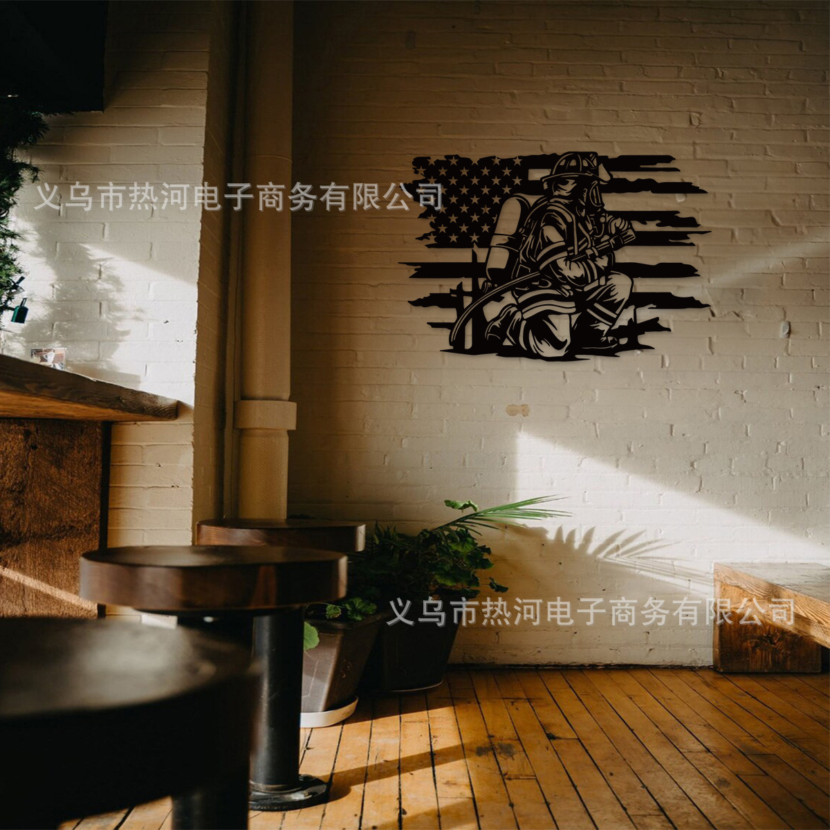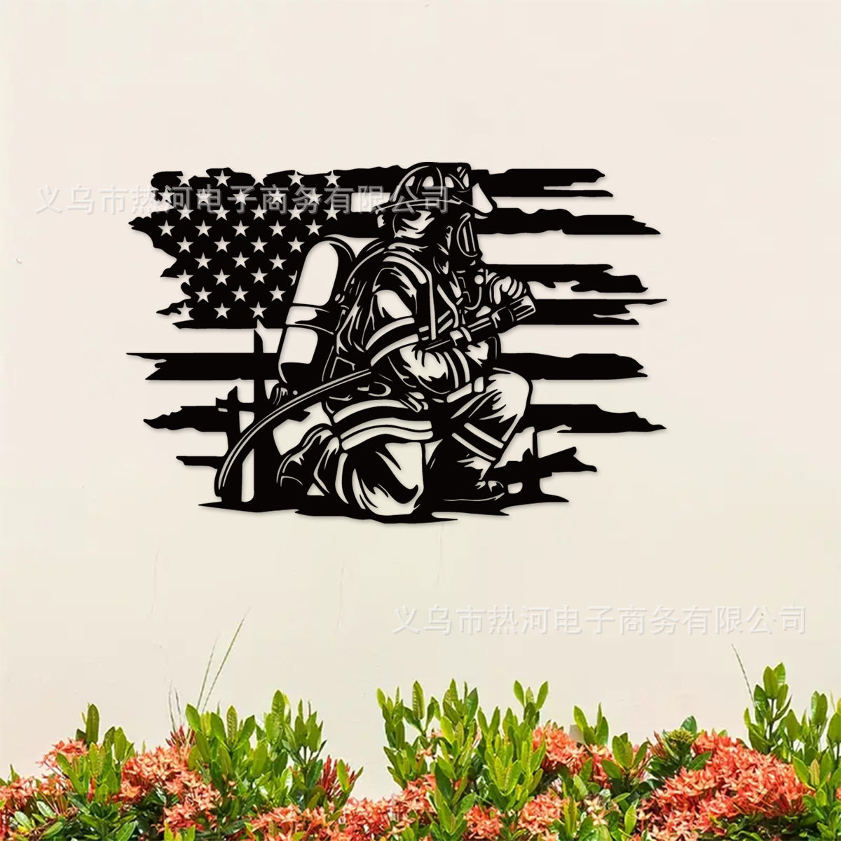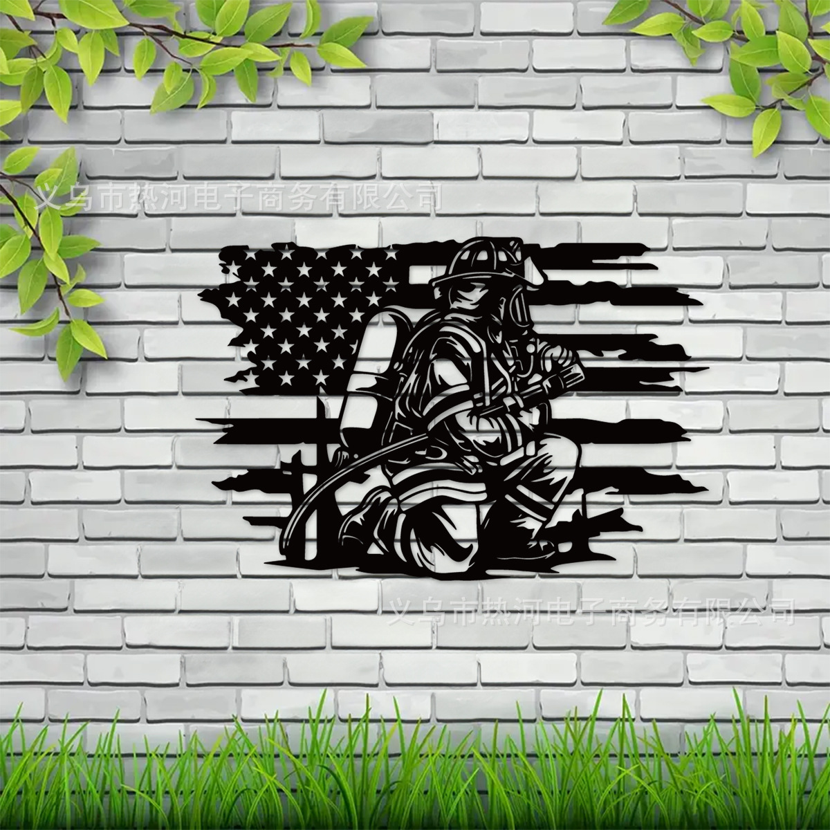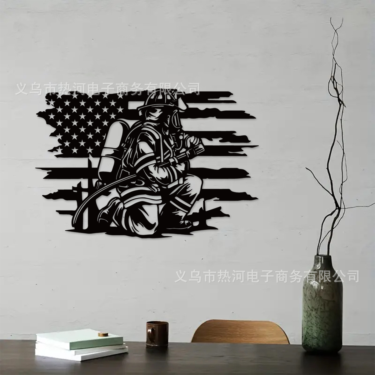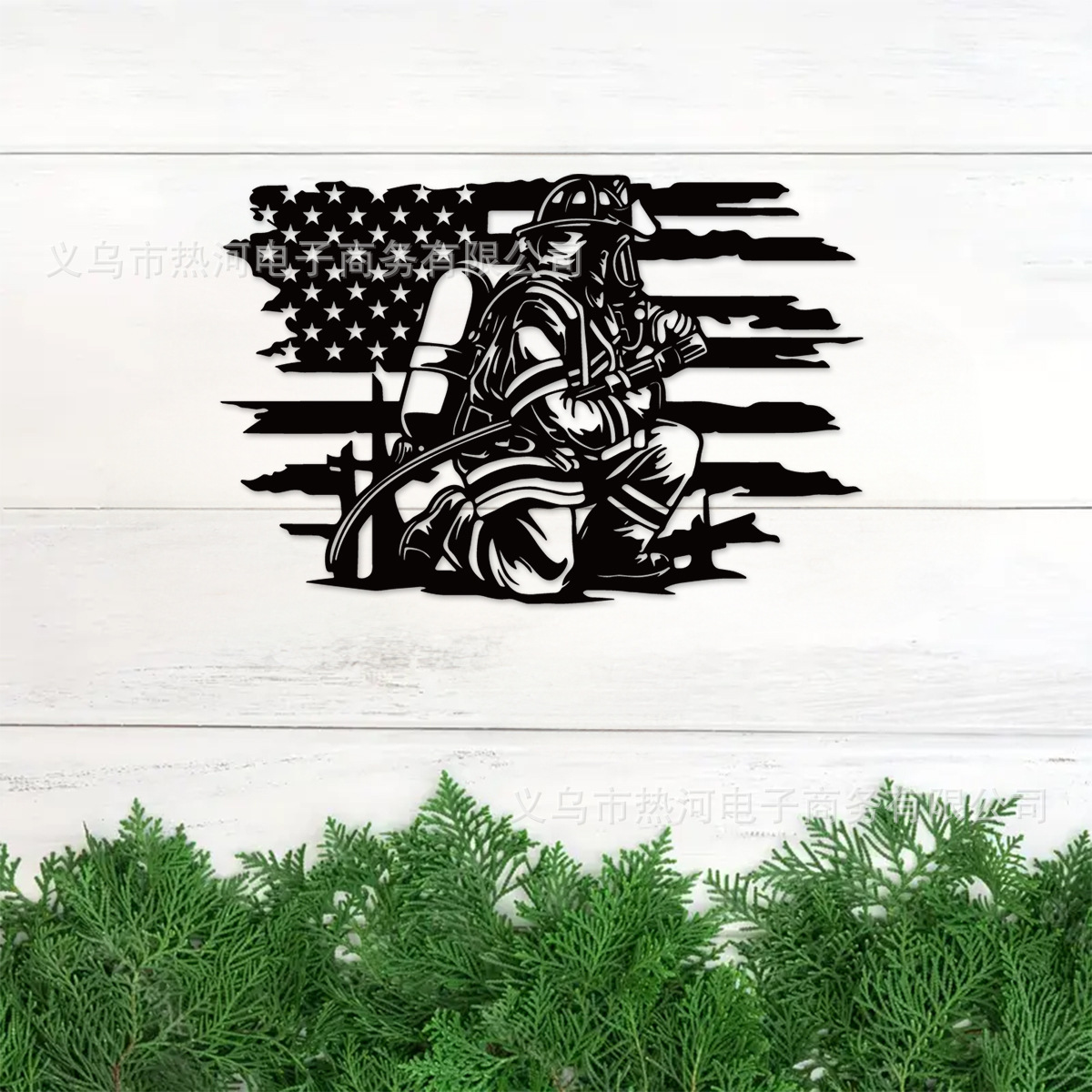 소방관 금속 벽 장식 소방관 벽 예술 미국 국기 예술 소방관 로고 금속 벽 교수형