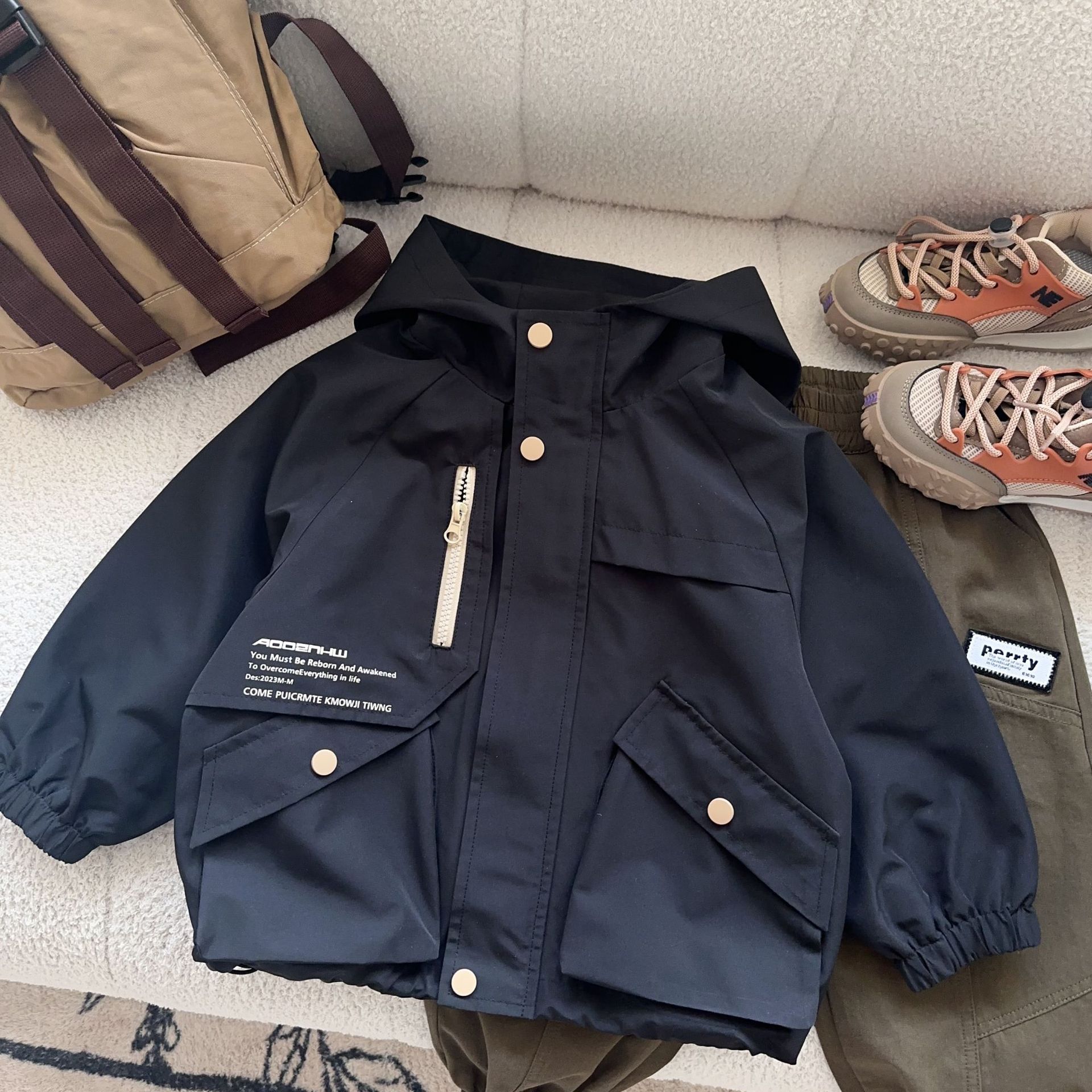 아동복 2025 봄, 가을 새로운 스타일 소년 코트 재킷 윈드 브레이커 후드 재킷 패션 아동 코트 ins스토어 가기