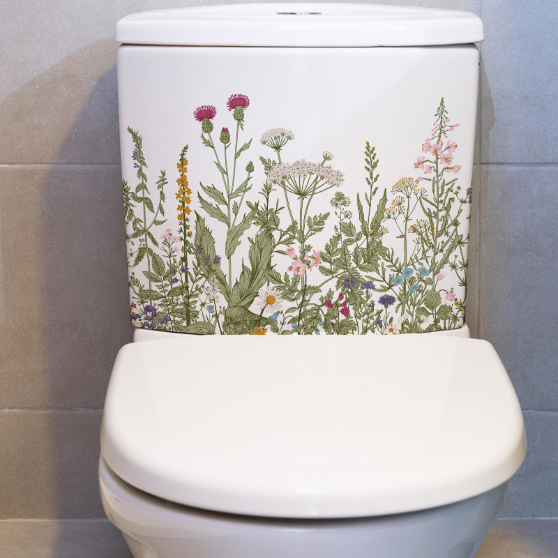 Qizhicai MT23056 꽃 같은 브로케이드 화장실 스티커 신선한 꽃과 식물 벽 스티커 욕실 벽 스티커 방수 스티커