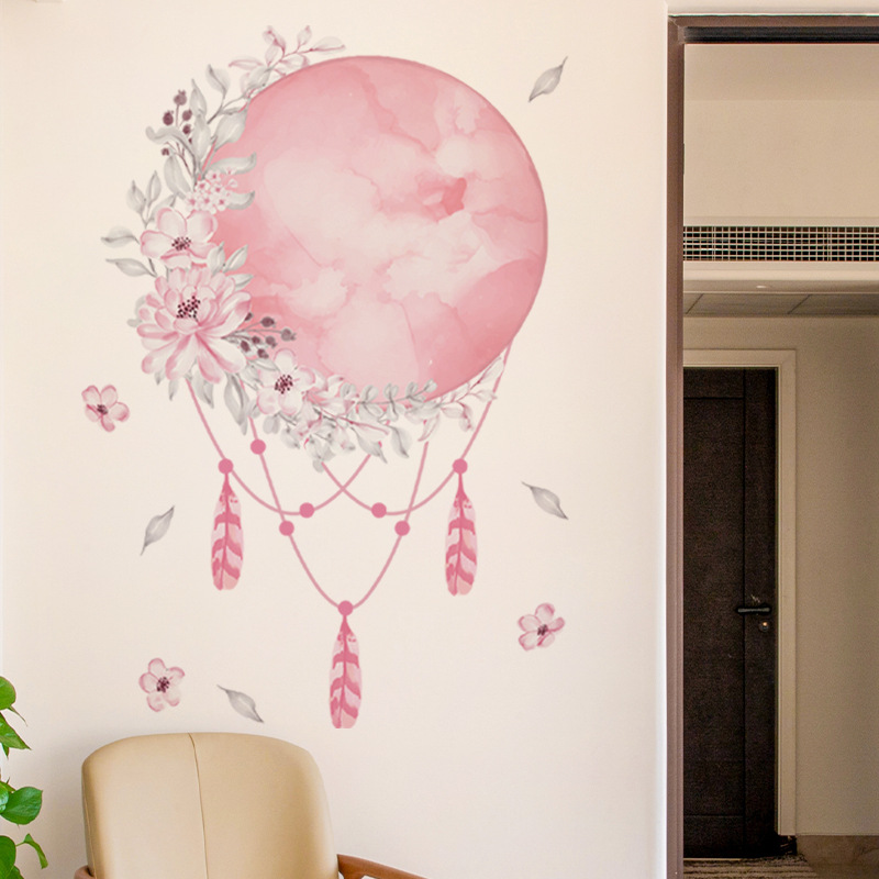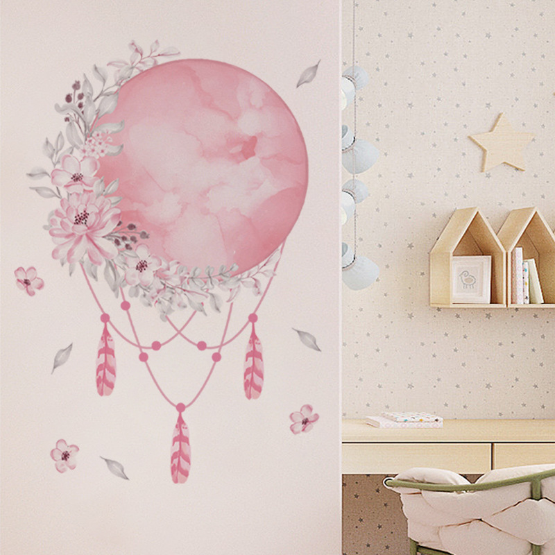 다채로운 CH36018 꿈 포수 5 새로운 북유럽 달 장식 침실 거실 배경 벽 핑크 꽃 스티커스토어 가기