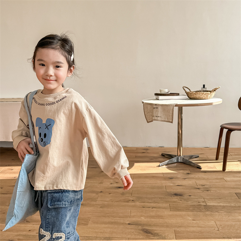 2025 가을 아동복 새로운 어린이 한국 스타일 봄, 가을 긴팔 티셔츠 소년 소녀 스웨트 셔츠 바닥 셔츠 5022스토어 가기