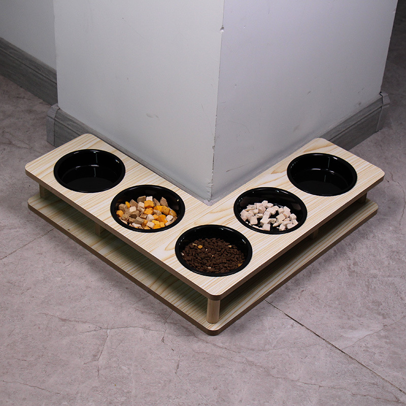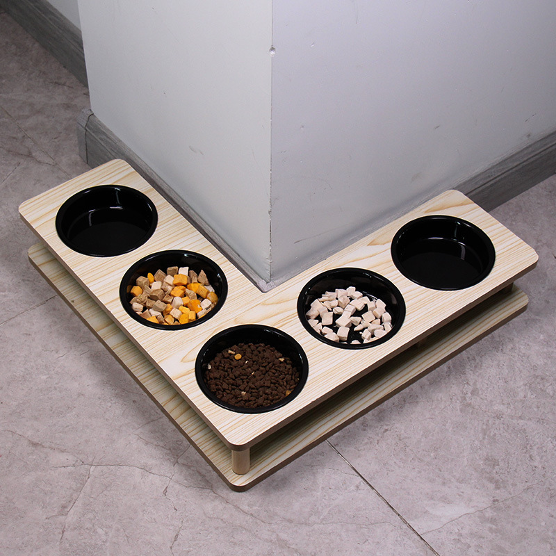 고양이 그릇 개 그릇 애완 동물 나무 랙 다기능 고양이 그릇 안티 노크 워터 피드 고양이 그릇 플랫 입 청소하기 쉬운 멀티 고양이 다섯 그릇