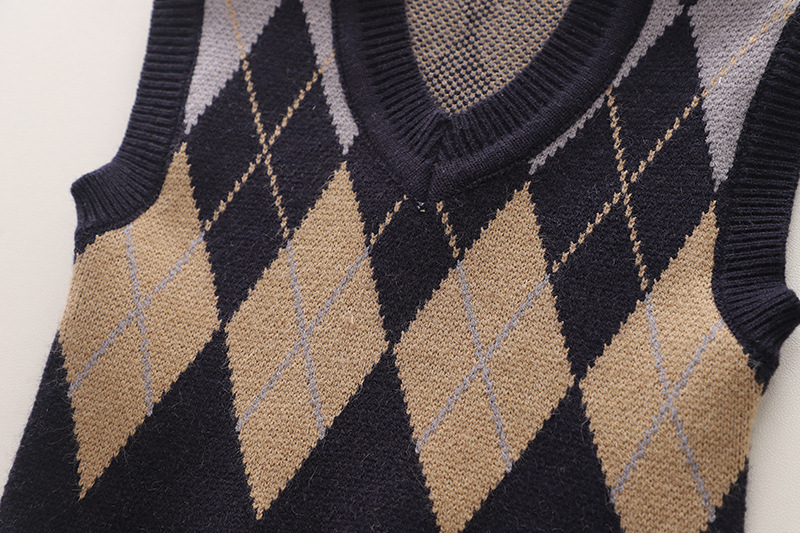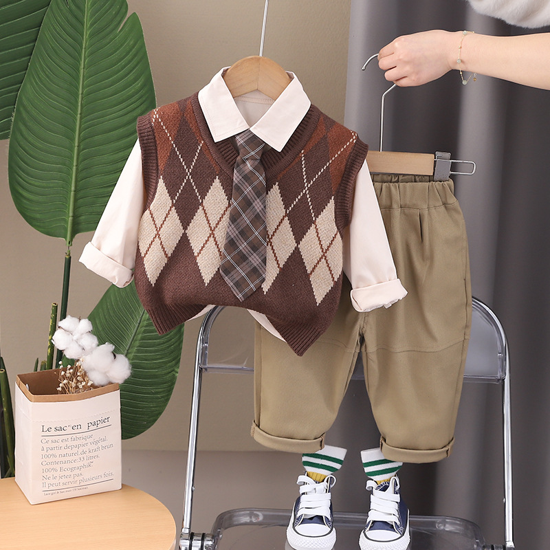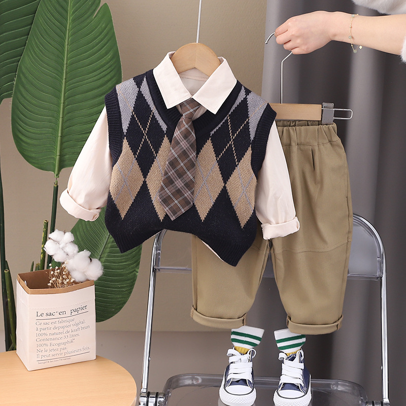 봄 어린이 의류 한국 스타일의 새로운 소년 소녀 세트 마름모 넥타이 스웨터 세트 캐주얼 봄 3 피스 세트 패션스토어 가기