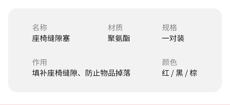 【产品作用】:填补座椅缝隙、防止物品掉落