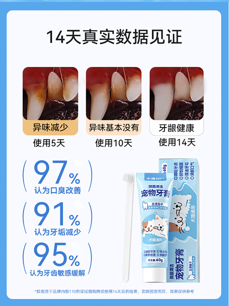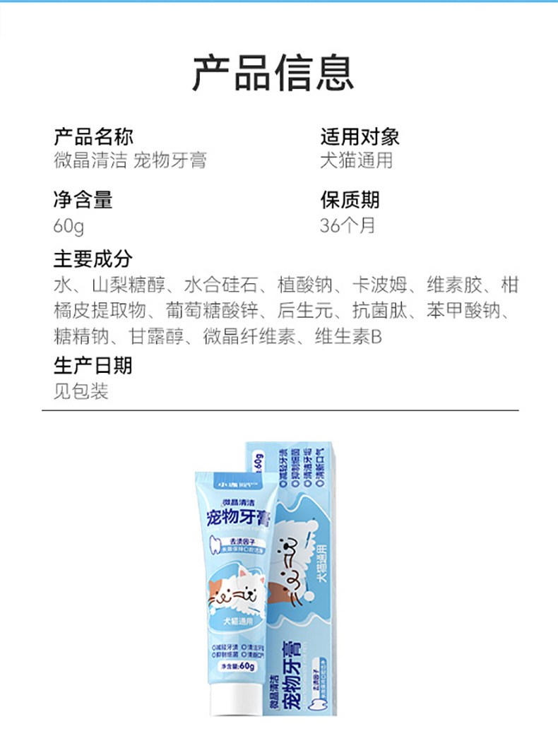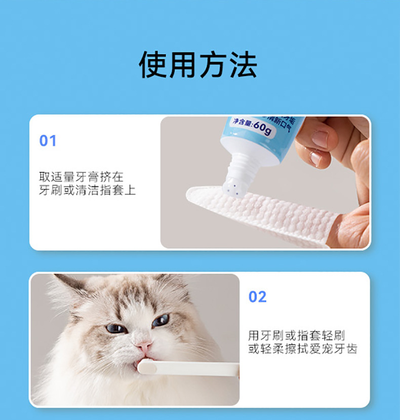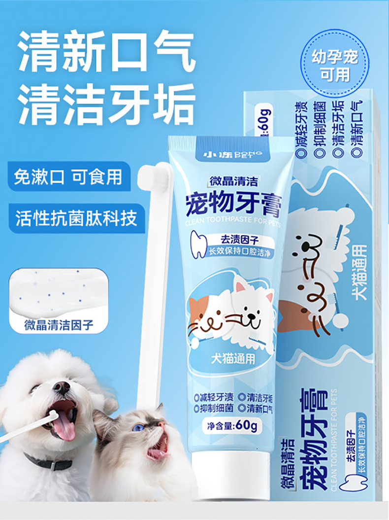 작은 냉동 애완 동물 치약 미세 결정 입자 60g 가정 치아 청소 양치가없는 고양이 개 애완 동물 청소스토어 가기