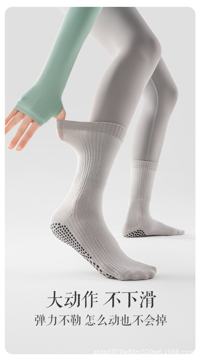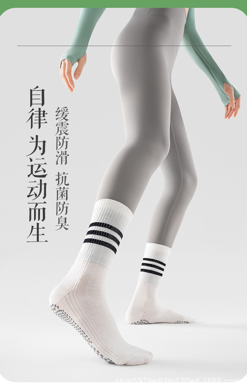 7A 항균 탈취제 요가 스포츠 양말 여성의 중간 종아리 길이 양말 봄과 가을 전문 피트니스 필라테스 미끄럼 스타킹스토어 가기