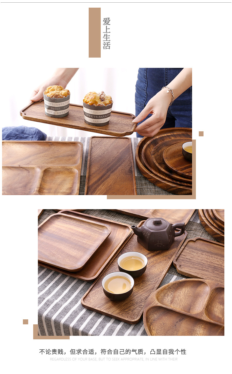 국경 간 호두 트레이 바람 디너 플레이트 호텔 가정용 식기 전체 나무 말린 차 플레이트 나무 접시 일본 과일 플레이트스토어 가기