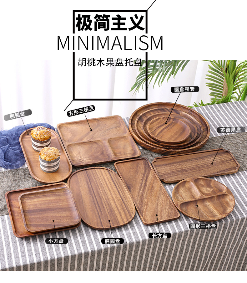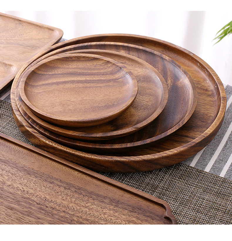 국경 간 호두 트레이 바람 디너 플레이트 호텔 가정용 식기 전체 나무 말린 차 플레이트 나무 접시 일본 과일 플레이트