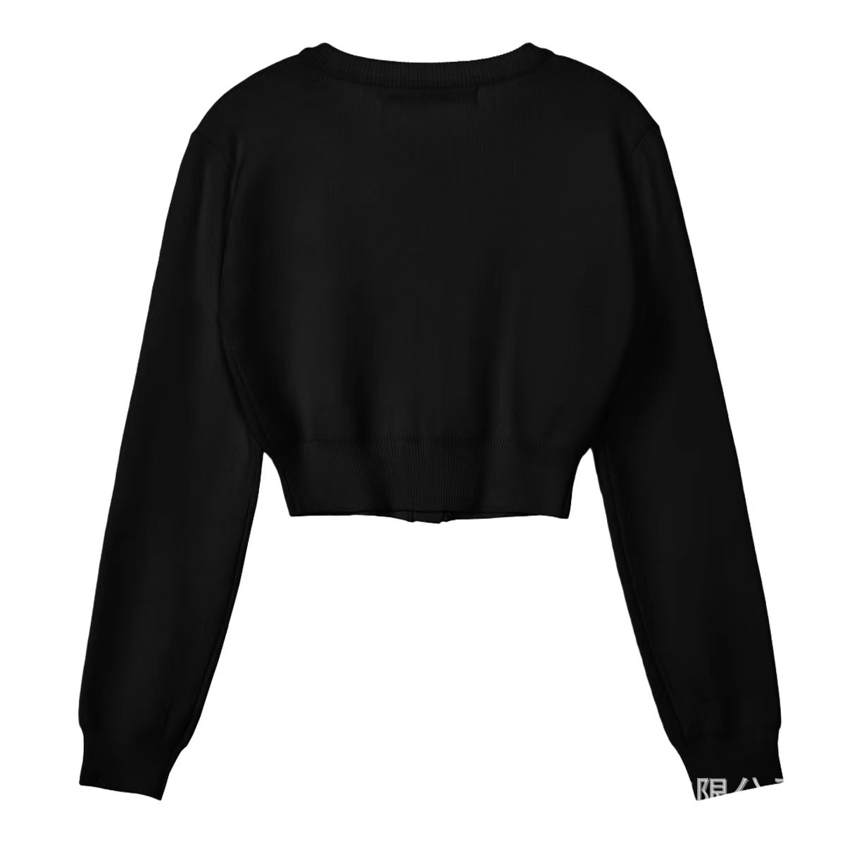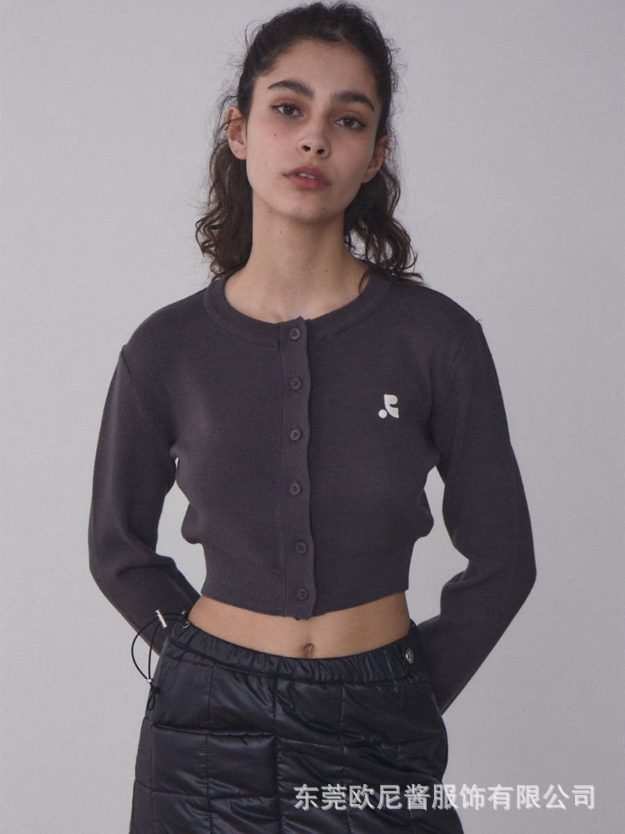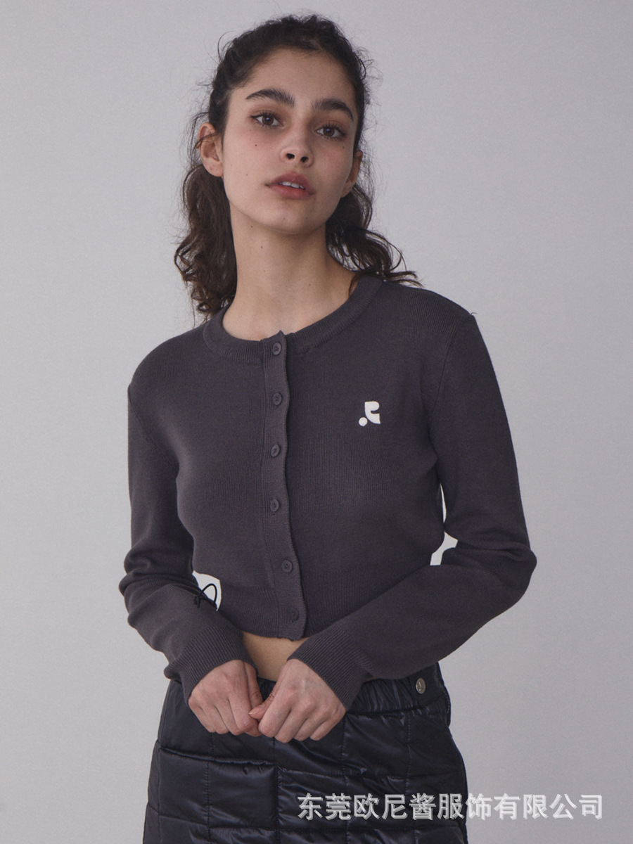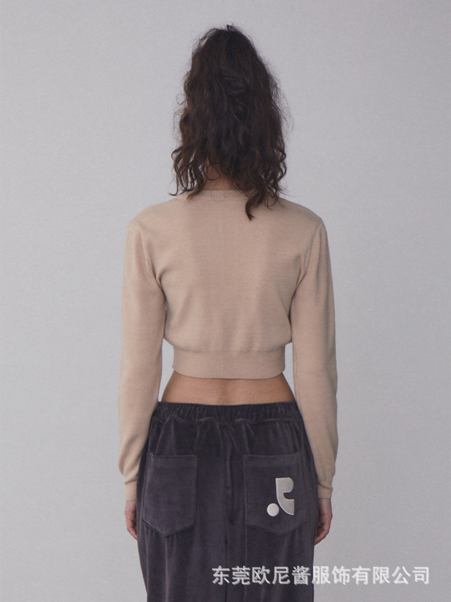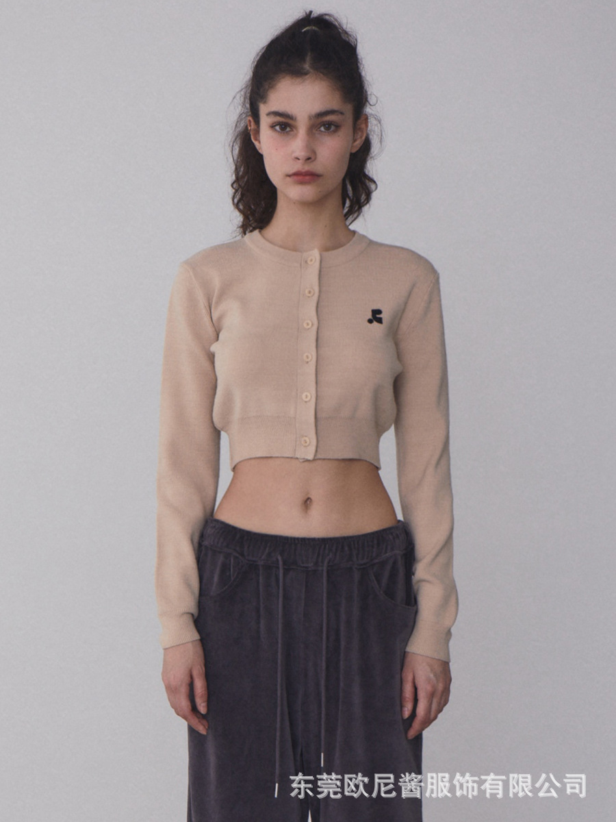 Zhao Lusi의 같은 스타일 restandrecreation 라운드 넥 니트 가디건 여성 RR 슬림 배꼽 노출 짧은 재킷
