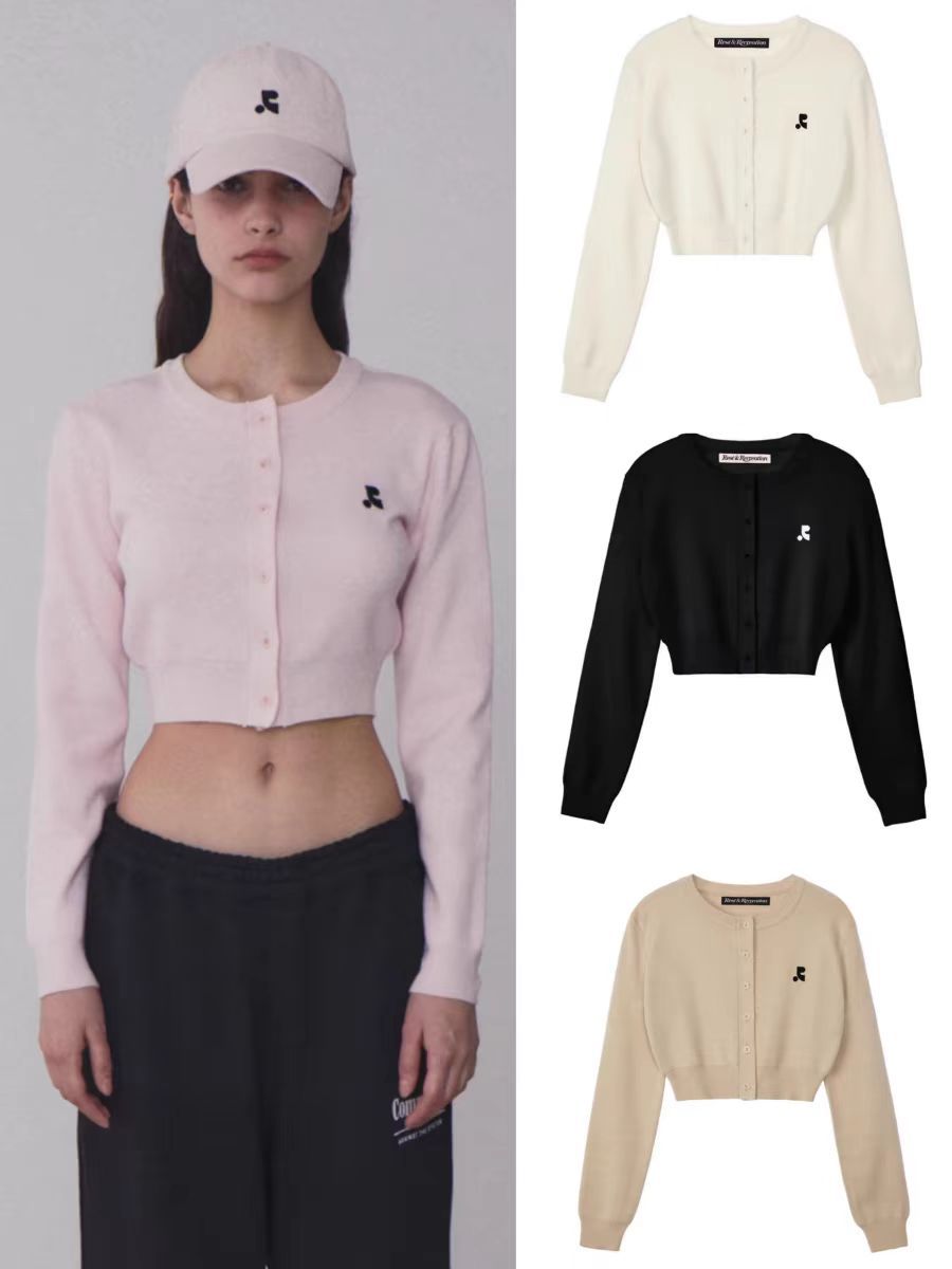 Zhao Lusi의 같은 스타일 restandrecreation 라운드 넥 니트 가디건 여성 RR 슬림 배꼽 노출 짧은 재킷스토어 가기