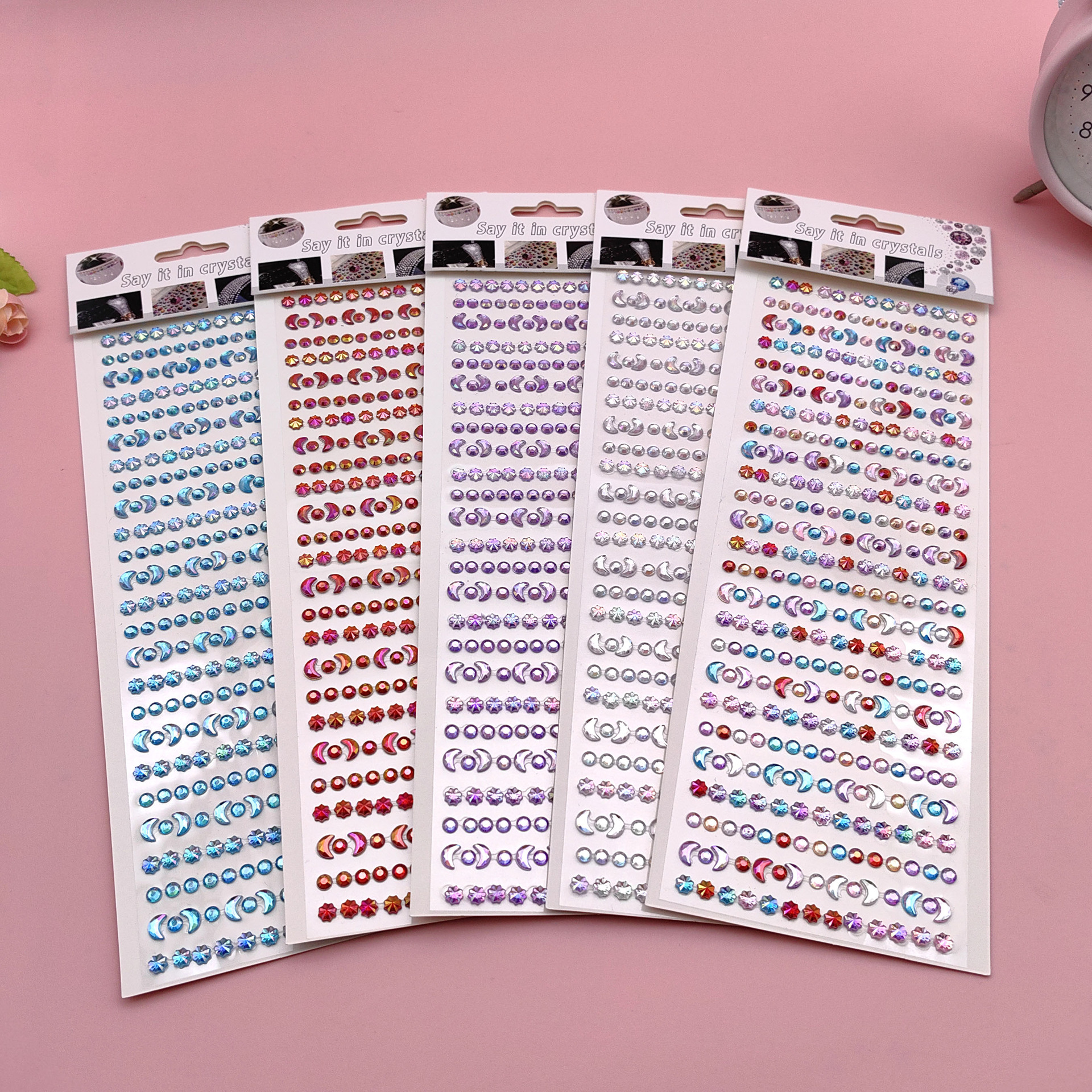 【产品用途】适用于新娘妆、舞台妆,可粘贴于眼睛,耳朵,眉心,美甲,头发,汽车装饰,儿童贴画,电脑笔记本,镜子,手机,杯子等所有想变漂亮的地方。