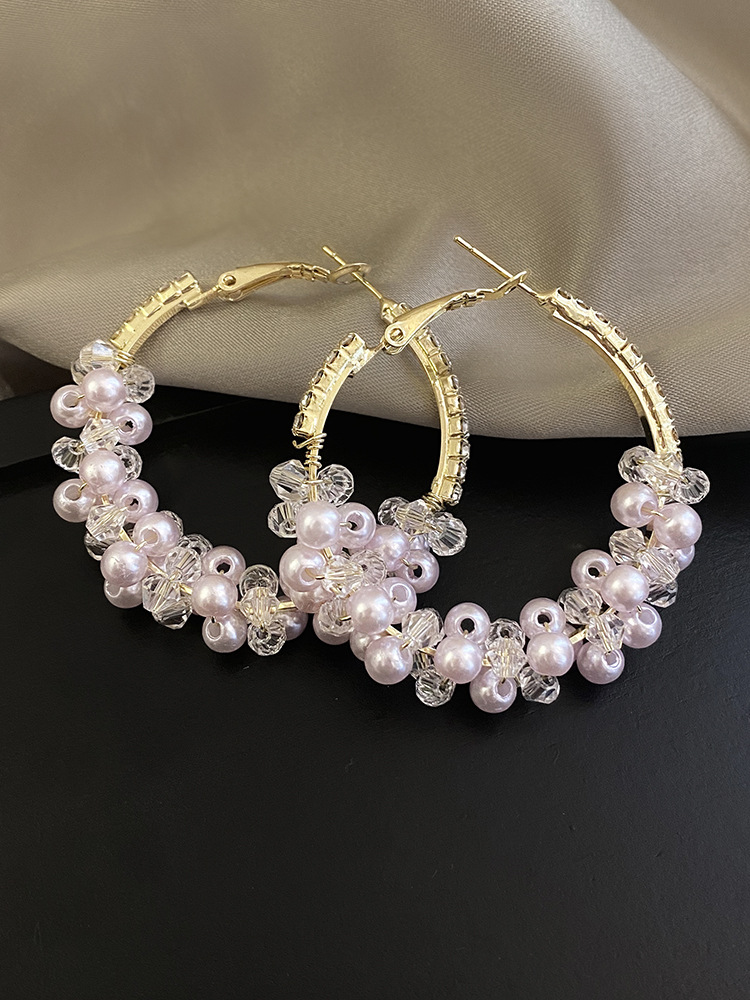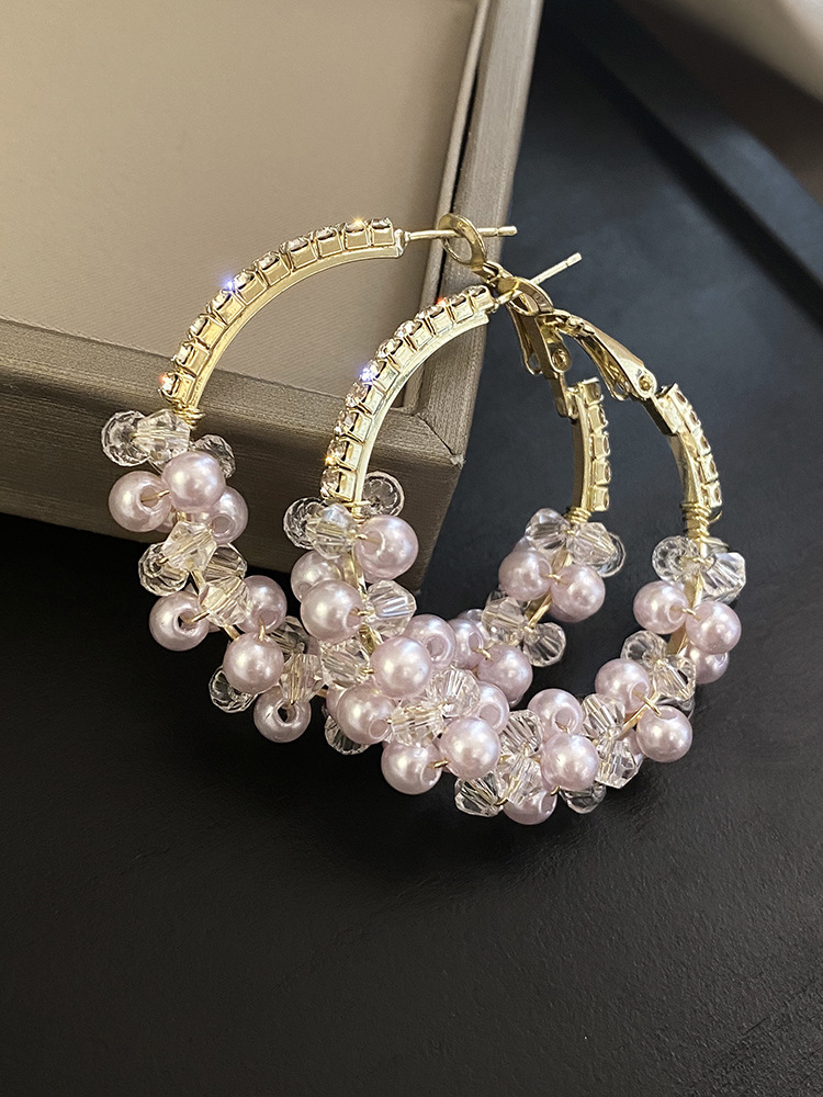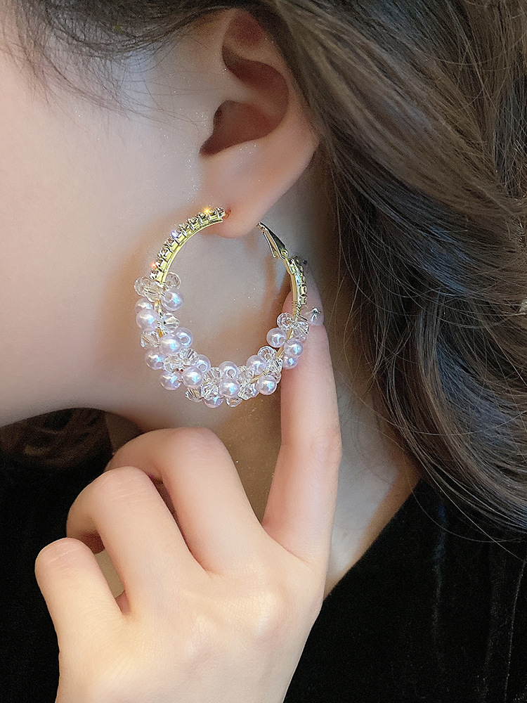 실버 바늘 크리스탈 귀걸이 서클 슈퍼 플래시 진주 다이아몬드 귀걸이 과장된 귀걸이 새로운 한국 기질 인터넷 유명 인사 귀걸이