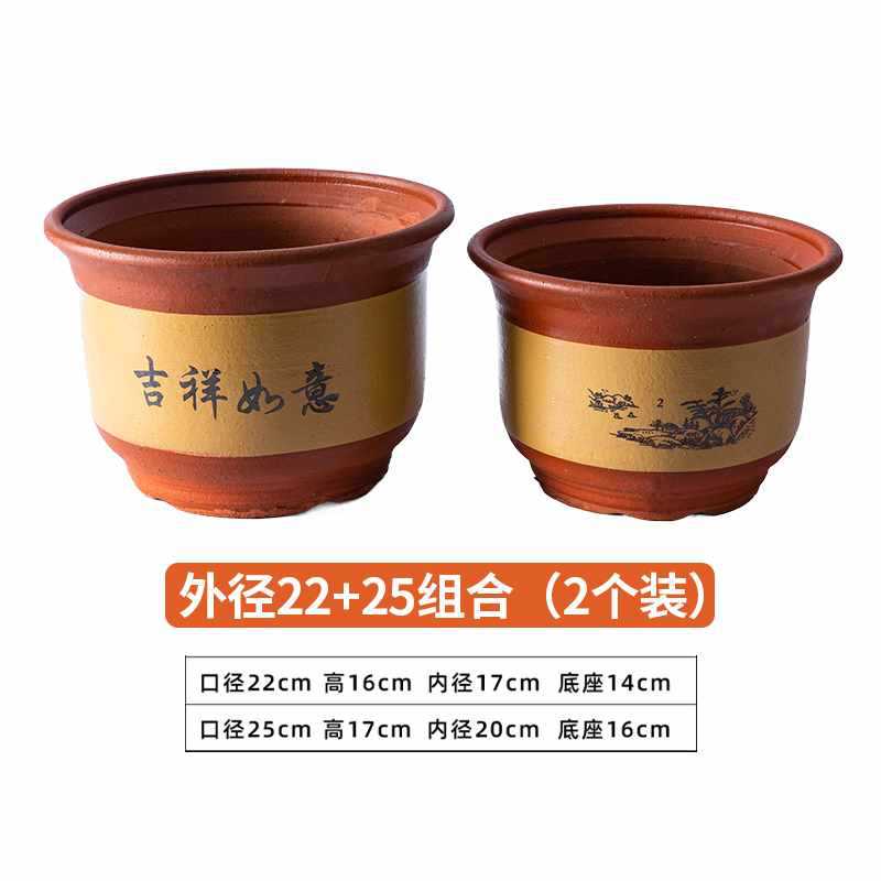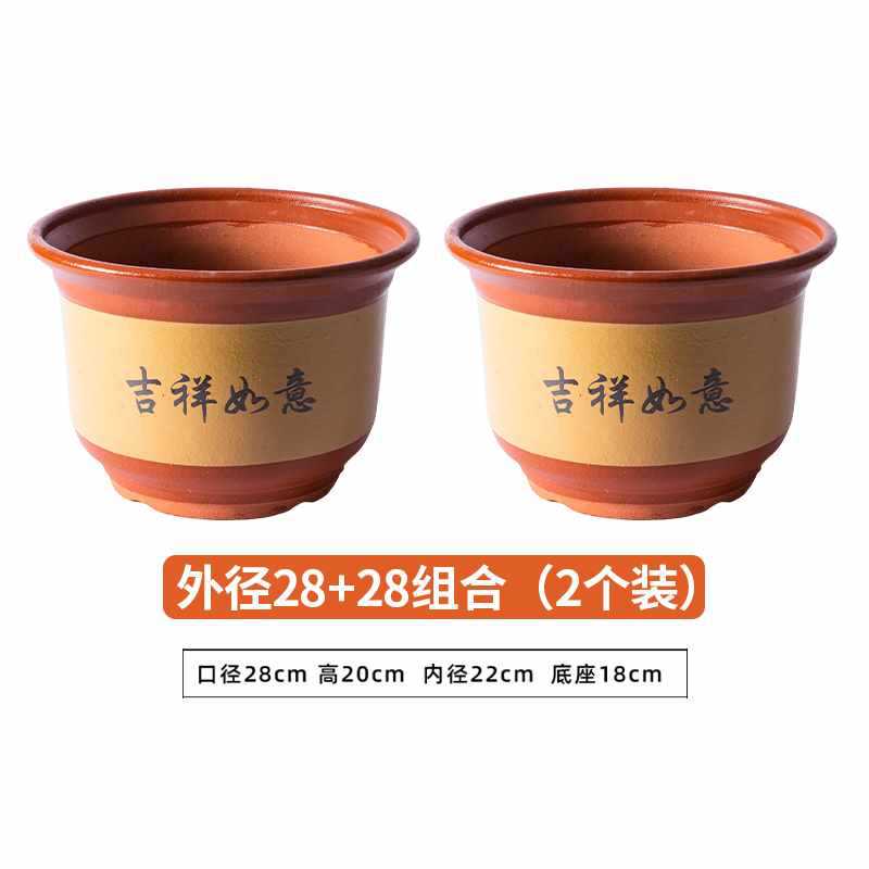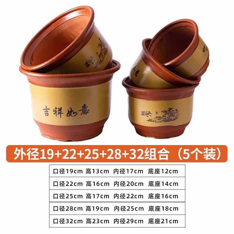 꽃 냄비 세라믹 가정용 큰 구경 점토 꽃 냄비 보라색 모래 큰 꽃 냄비 통기성 세라믹 냄비 녹색 식물