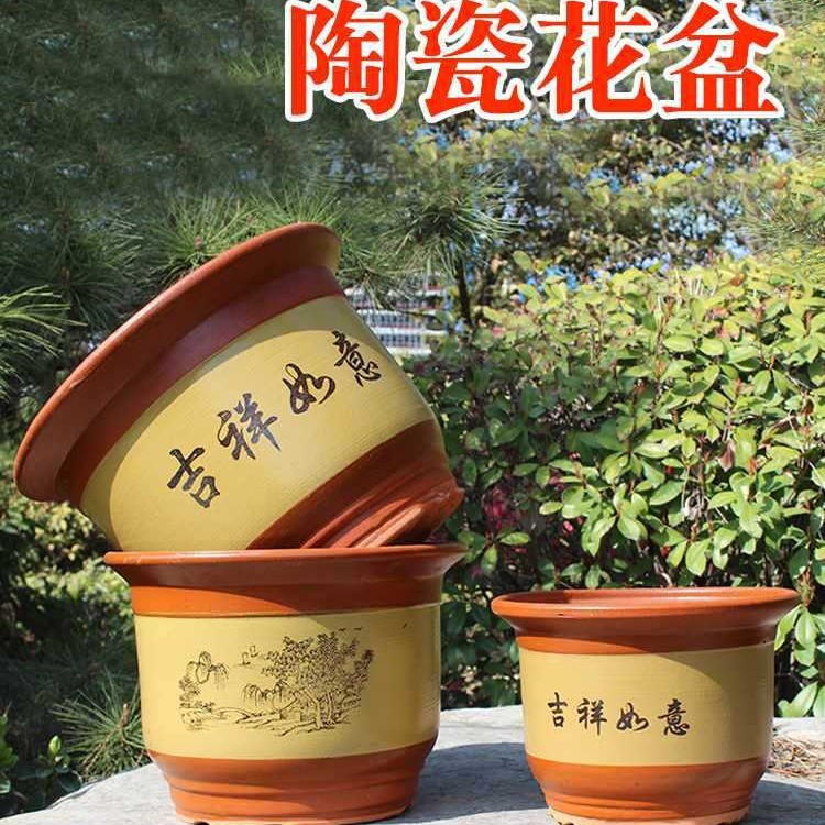 꽃 냄비 세라믹 가정용 큰 구경 점토 꽃 냄비 보라색 모래 큰 꽃 냄비 통기성 세라믹 냄비 녹색 식물스토어 가기