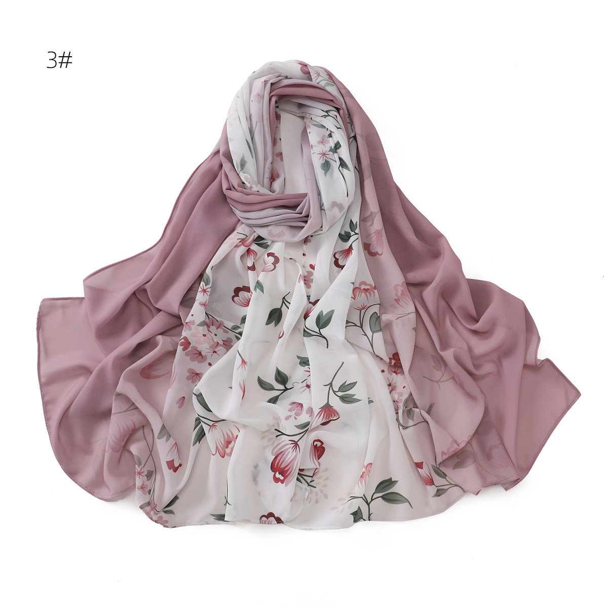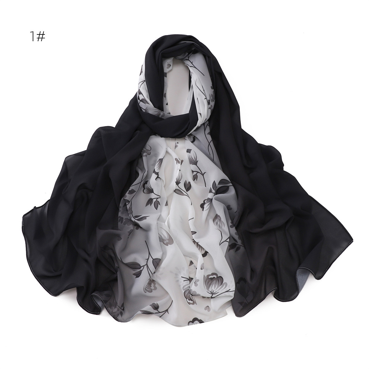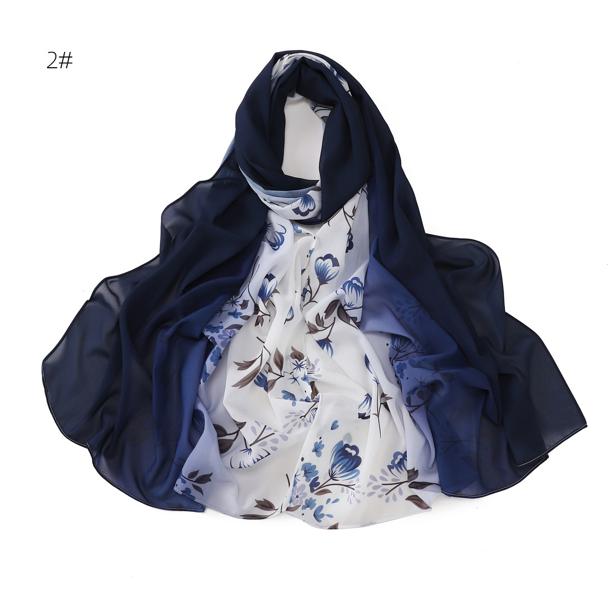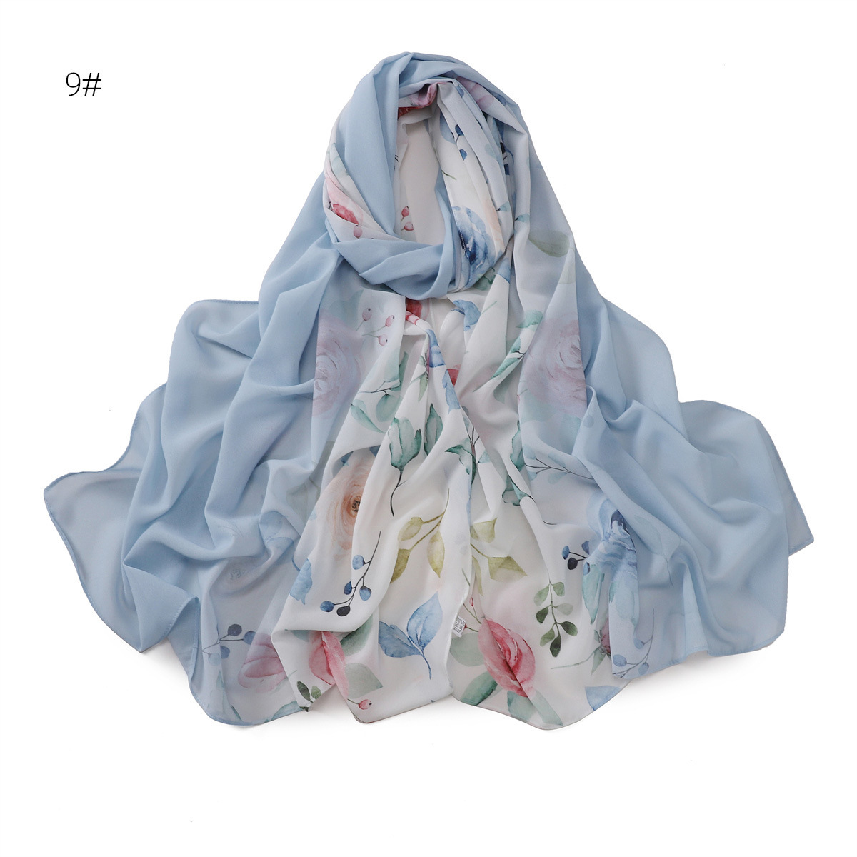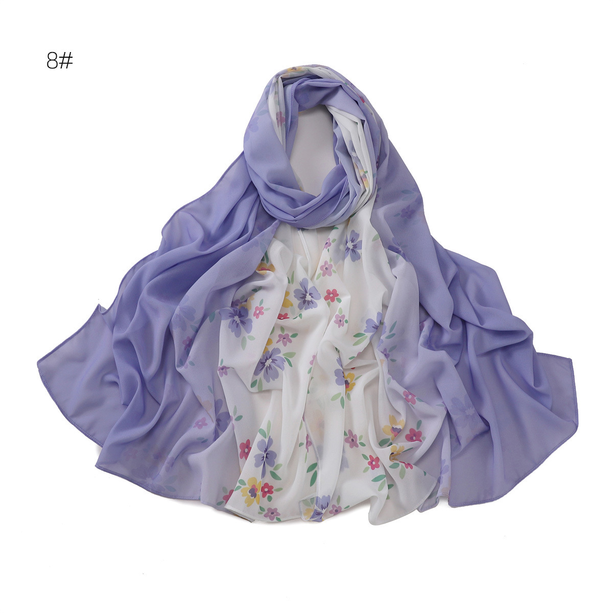 모리 스타일의 신선한 단색 인쇄 손으로 그린 그라디언트 꽃 무늬 진주 쉬폰 긴 스카프 목도리 여성용 가방 스카프스토어 가기