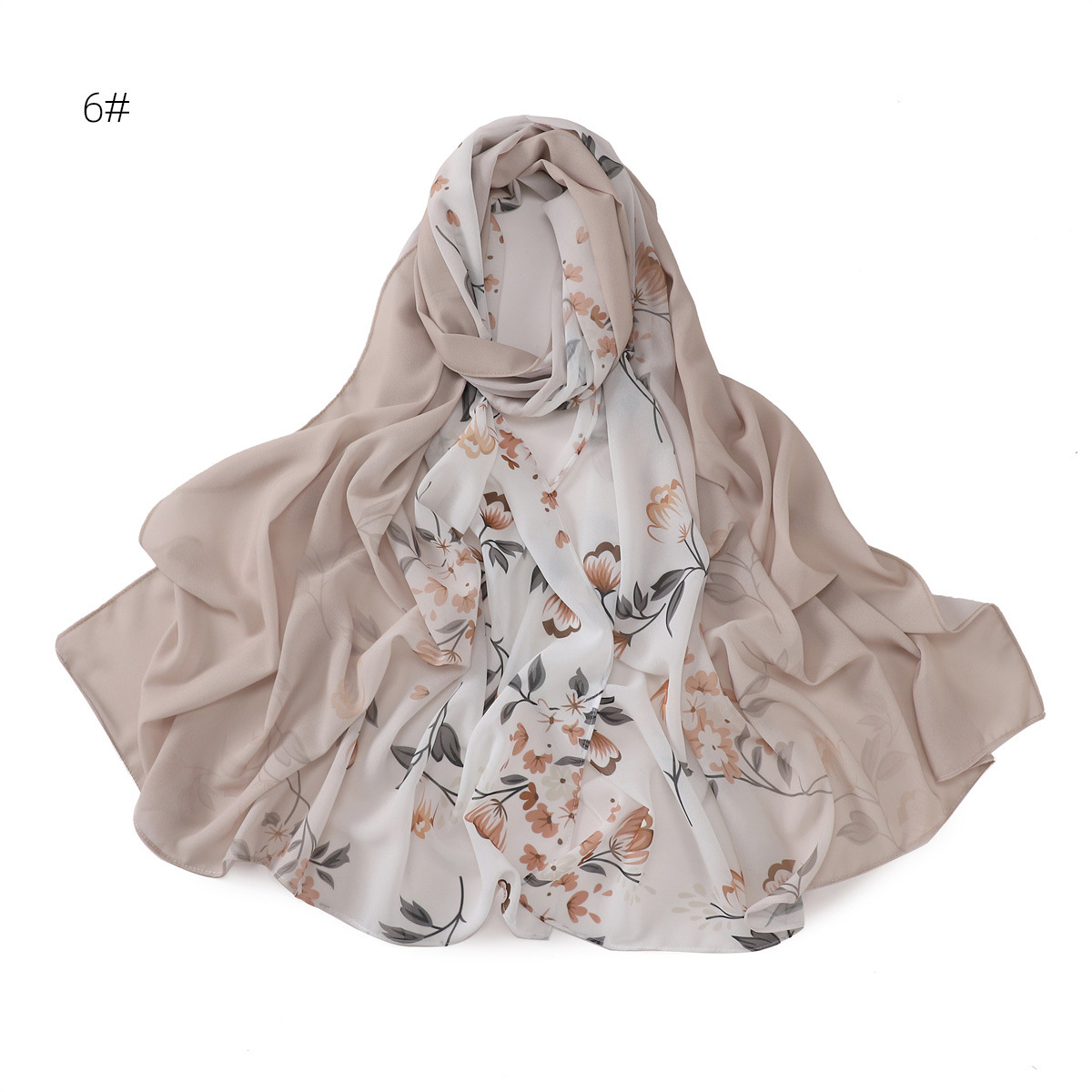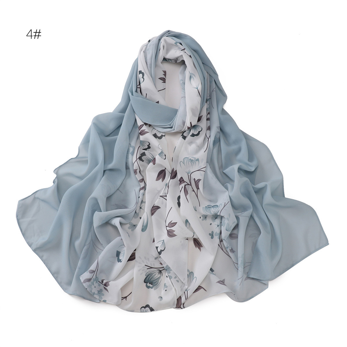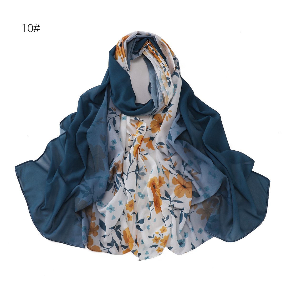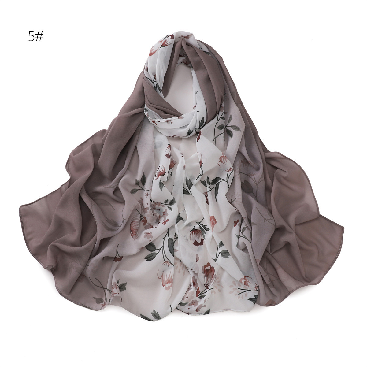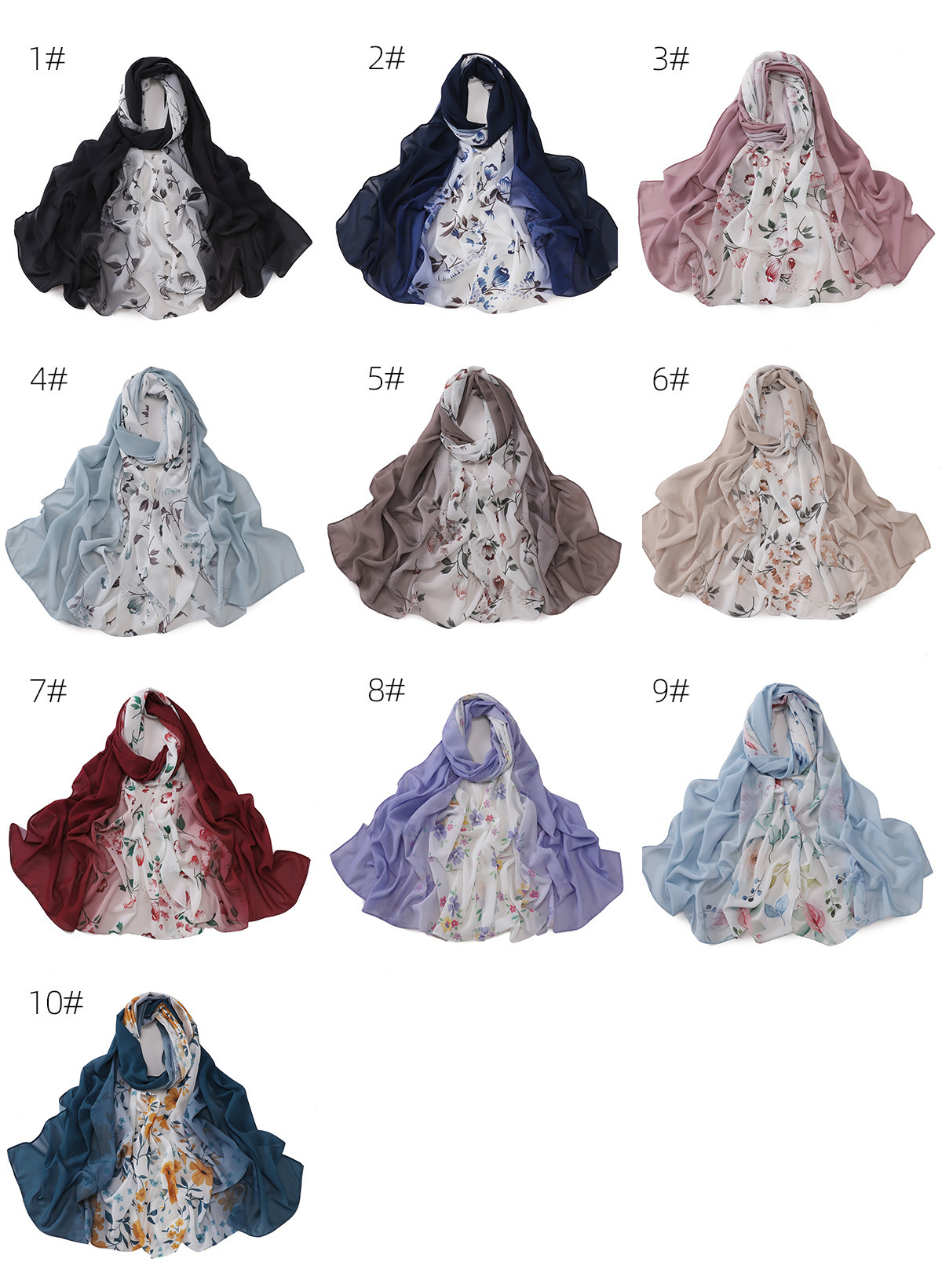 모리 스타일의 신선한 단색 인쇄 손으로 그린 그라디언트 꽃 무늬 진주 쉬폰 긴 스카프 목도리 여성용 가방 스카프스토어 가기