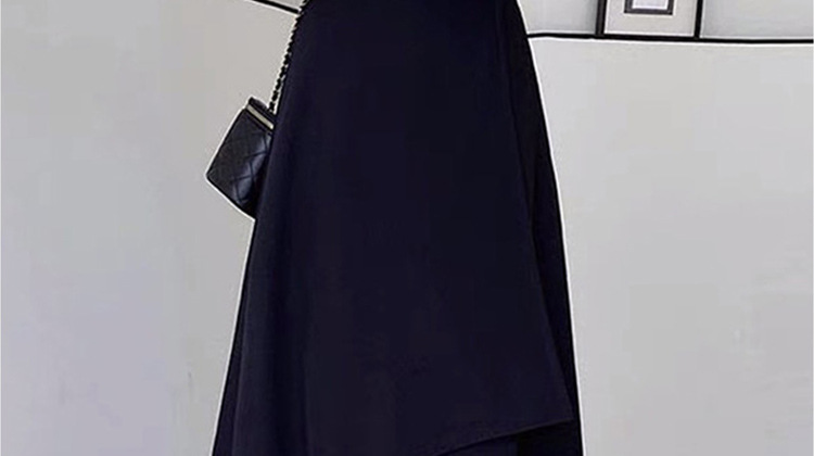 여성용 블랙 스커트 봄과 여름 새로운 높은 허리 슬리밍 느슨한 플러스 사이즈 드레이프 중간 길이 A 라인 불규칙한 스커트