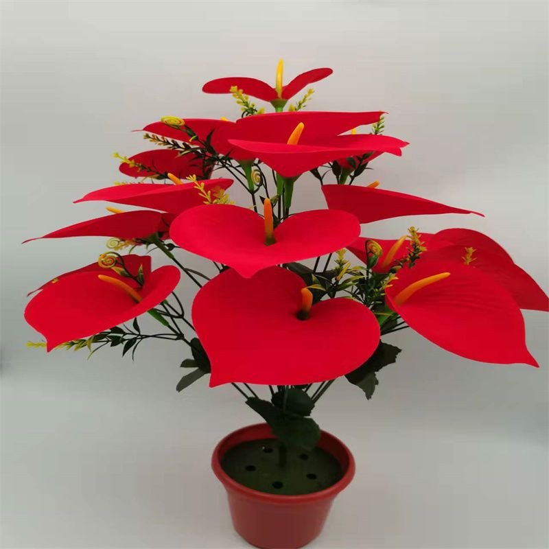 인공 크리스마스 꽃 녹색 식물 봄 축제 크리스마스 장식 홈 거실 빨간 큰 꽃 꽃다발 원예 실크 꽃 냄비
