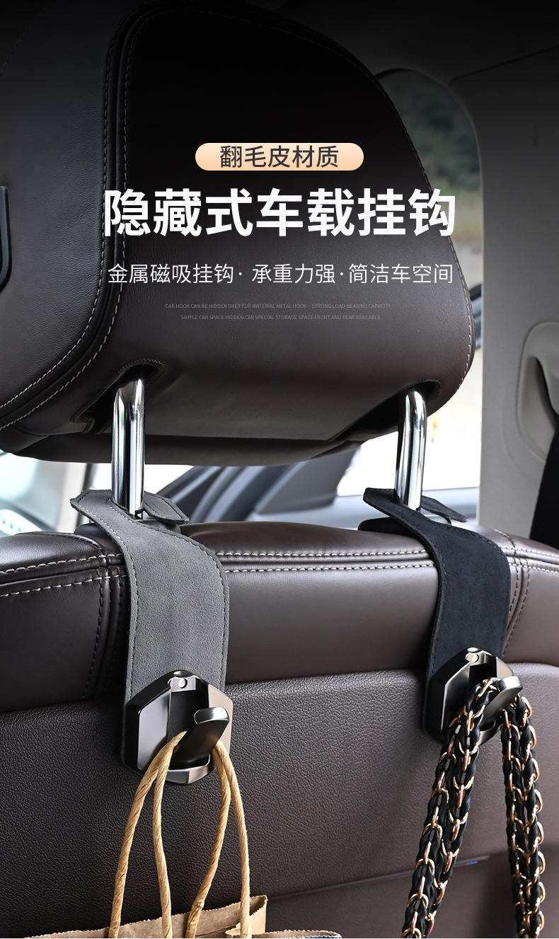 자동차 시트 백 숨겨진 후크 스웨이드 리어 카 인테리어 작은 물체 보관 후크스토어 가기
