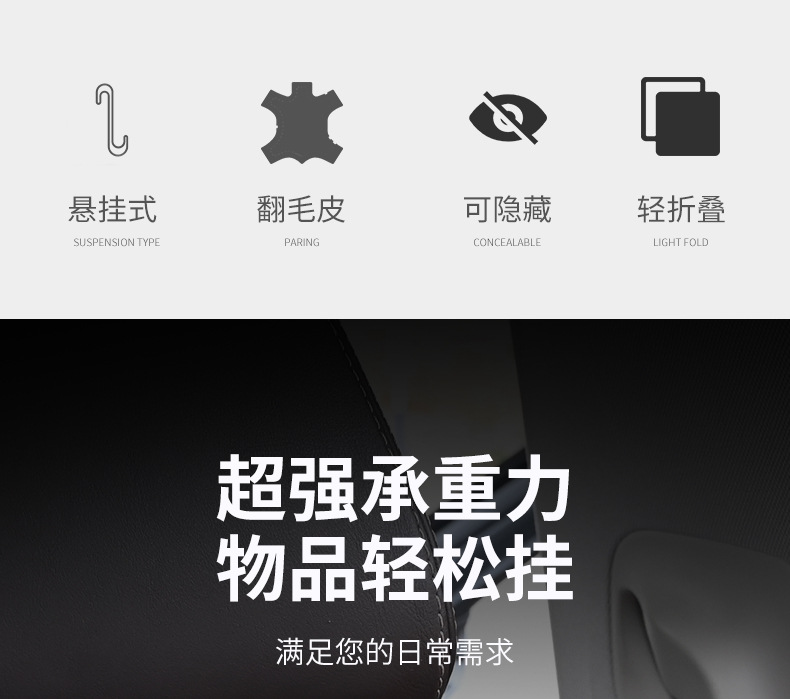 자동차 시트 백 숨겨진 후크 스웨이드 리어 카 인테리어 작은 물체 보관 후크
