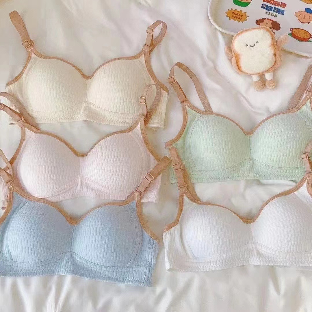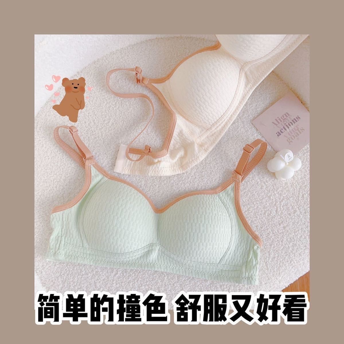 소녀 속옷 무선 푸시 와플 간단한 학생 작은 가슴 작은 얇은 편안한 통기성 브래지어스토어 가기