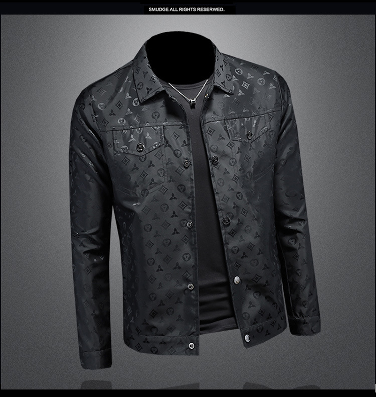봄과 가을 새로운 인쇄 옷깃 재킷 남성 유럽 역 패션 슬림 핏 올 매치 캐주얼 재킷 JK9033스토어 가기