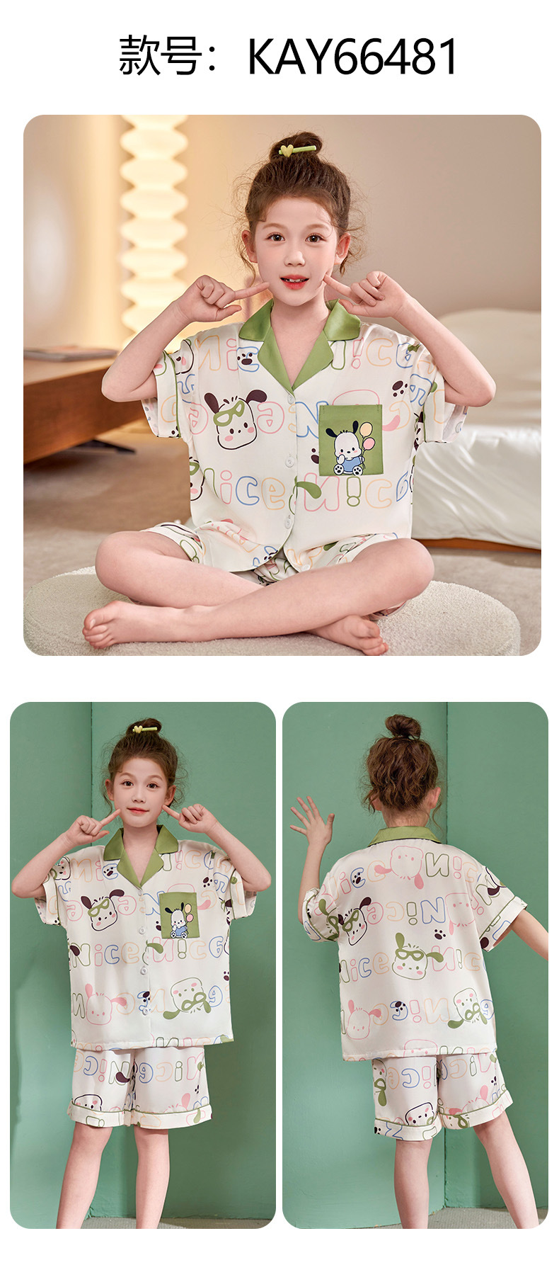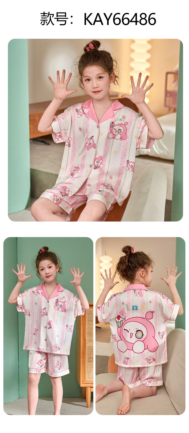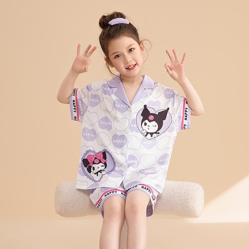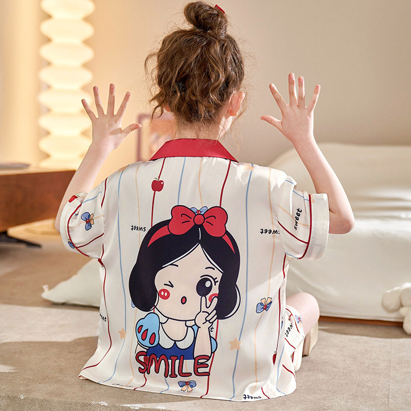 소녀 홈 웨어 세트 여름 2024 새로운 큰 어린이 소녀 아이스 실크 짧은 소매 여름 어린이 잠옷 에어컨스토어 가기