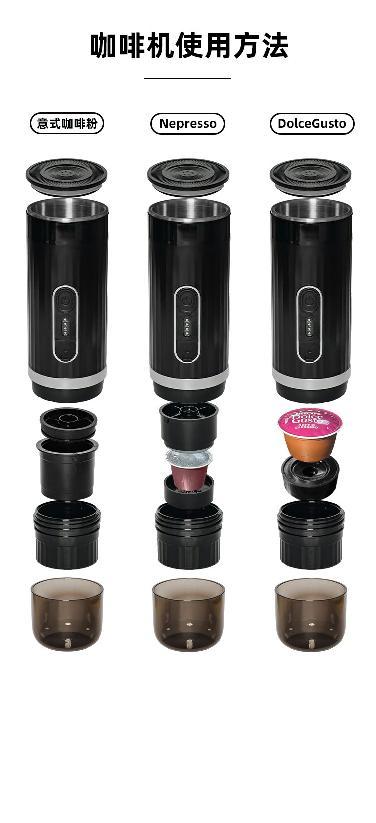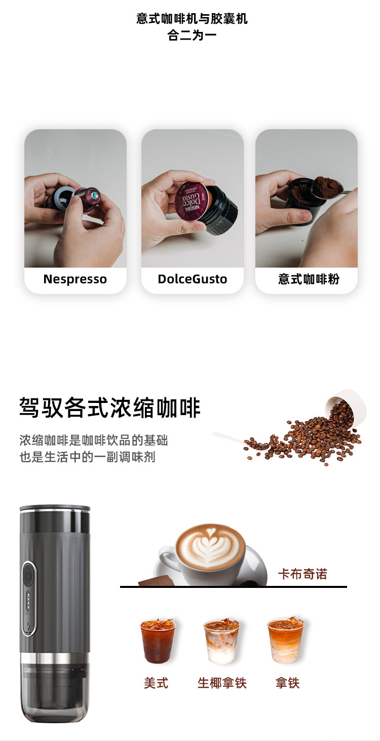 국경 휴대용 이탈리아 에스프레소 기계 3-in-1 캡슐 분말 전기 야외 자동차 무선 난방 커피 기계스토어 가기