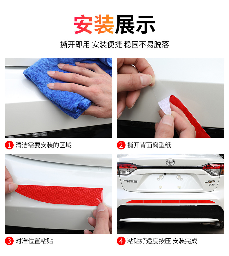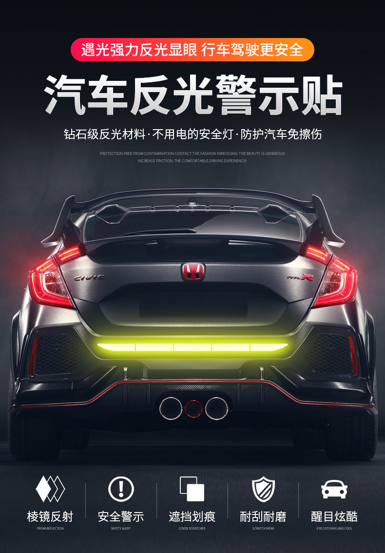 자동차 후방 야간 강한 반사 스티커 자동차 스티커 창조적 인 후방 범퍼 후방 기어 장식 안전 스티커 후방 충돌 방지