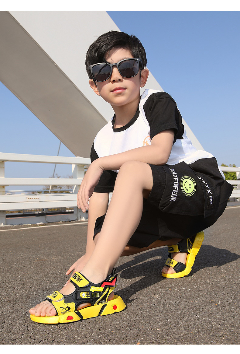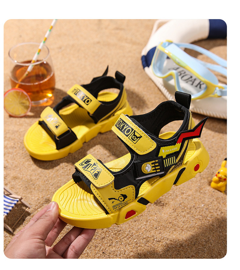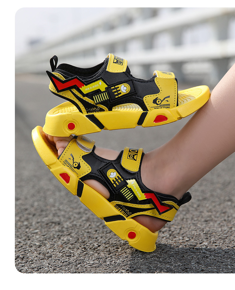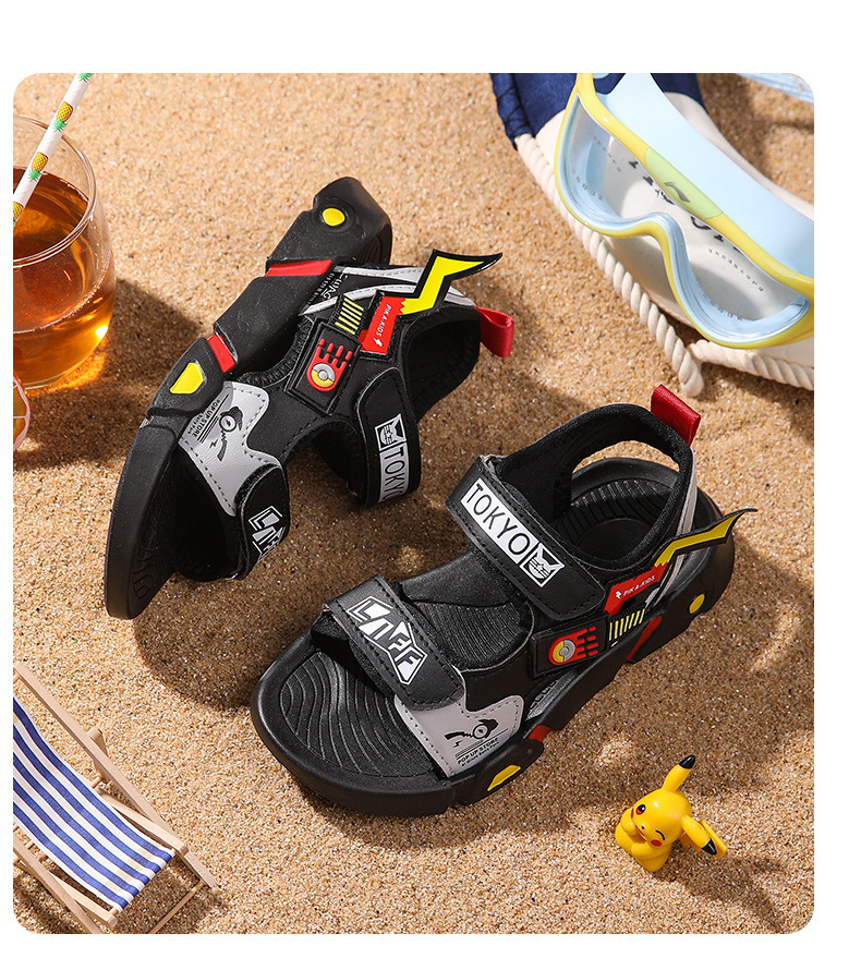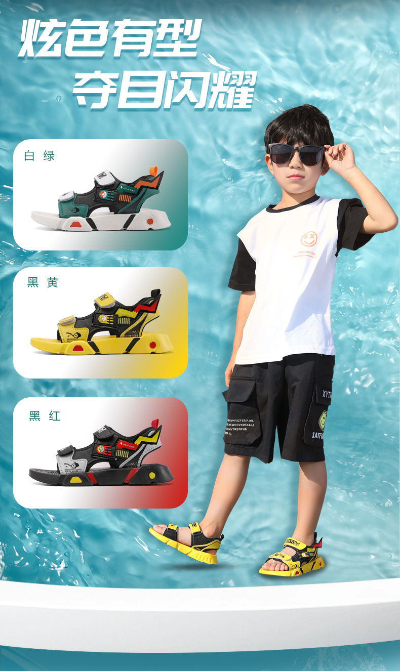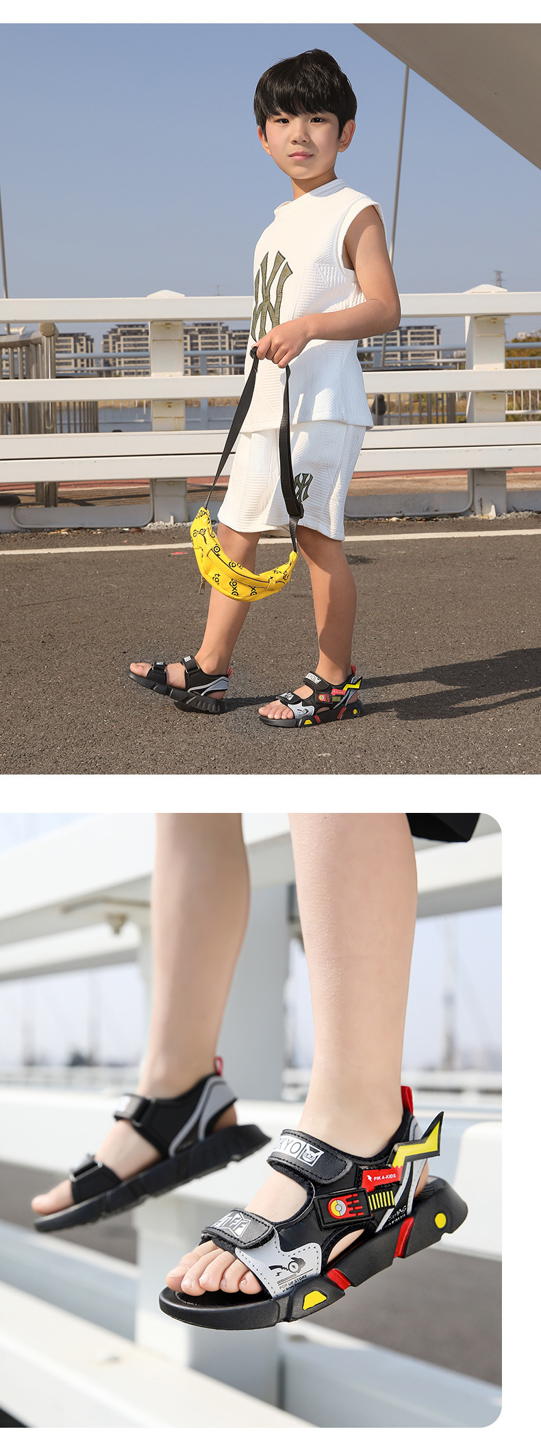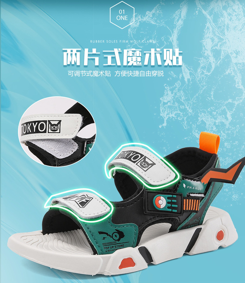 어린이 샌들 2024 여름 통기성 중공 초등학교 어린이 미끄럼 방지 방수 부드러운 바닥 소년 마술 샌들