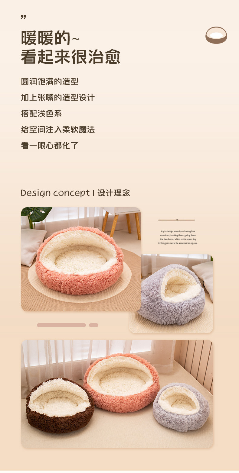 도매 쉘 둥지 반 폐쇄 애완 동물 둥지 봉제 라운드 애완 동물 매트 겨울 따뜻한 고양이 둥지 물린 썩은 개 둥지