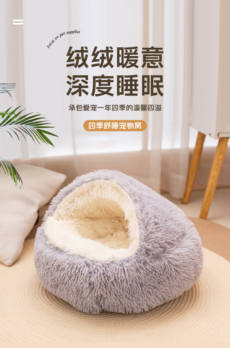 도매 쉘 둥지 반 폐쇄 애완 동물 둥지 봉제 라운드 애완 동물 매트 겨울 따뜻한 고양이 둥지 물린 썩은 개 둥지스토어 가기