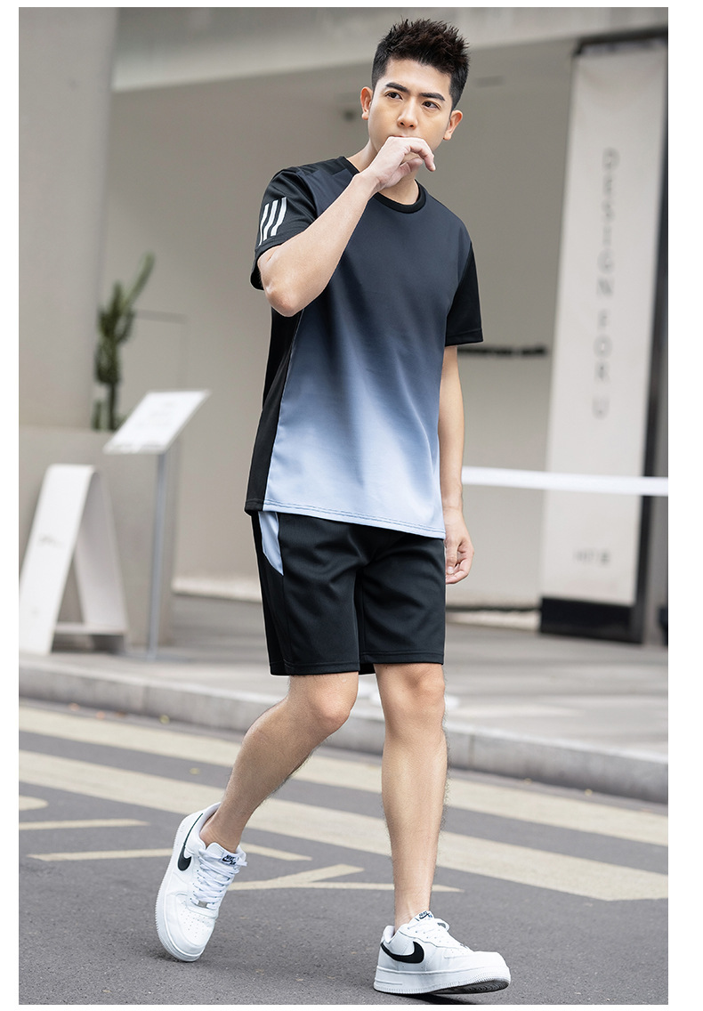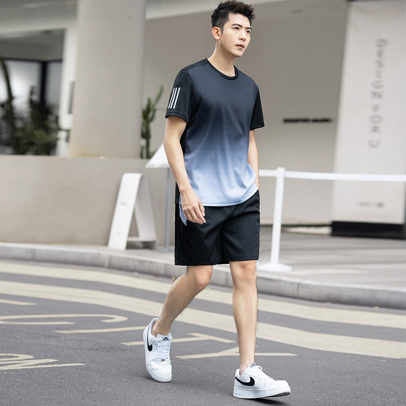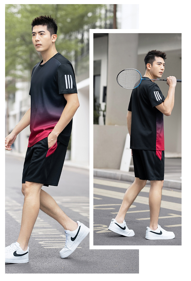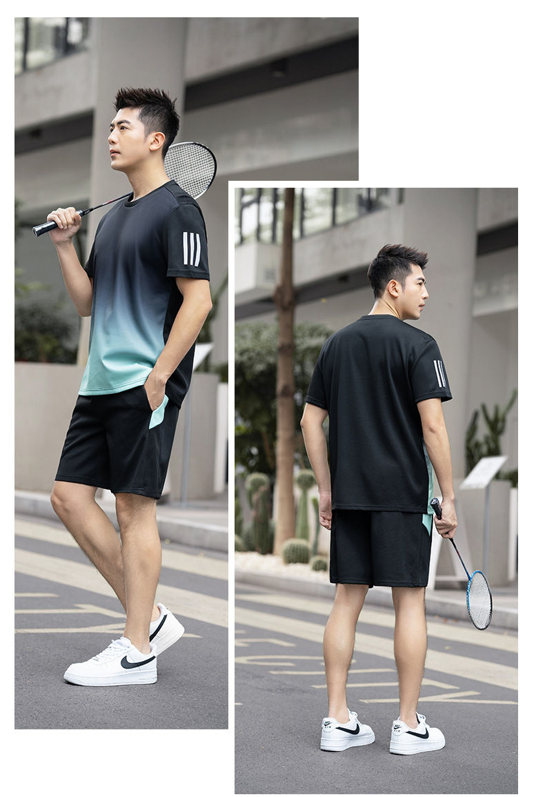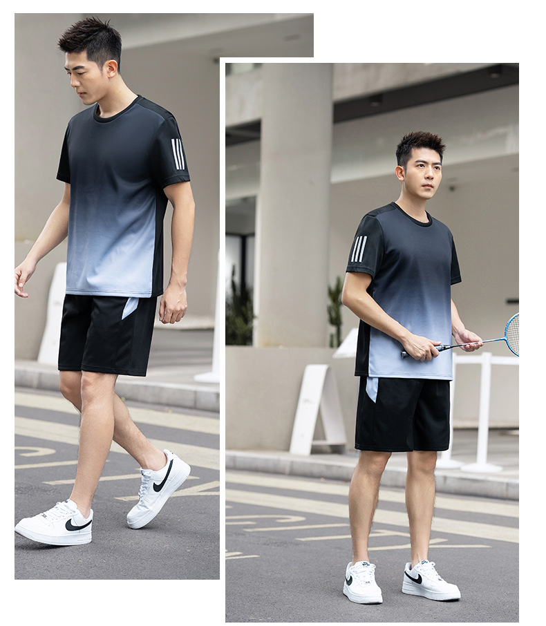 플러스 사이즈 스포츠 세트 남자 2024 여름 뚱뚱한 피트니스 느슨한 빠른 건조 옷 세트 플러스 사이즈 야외 투피스 세트스토어 가기