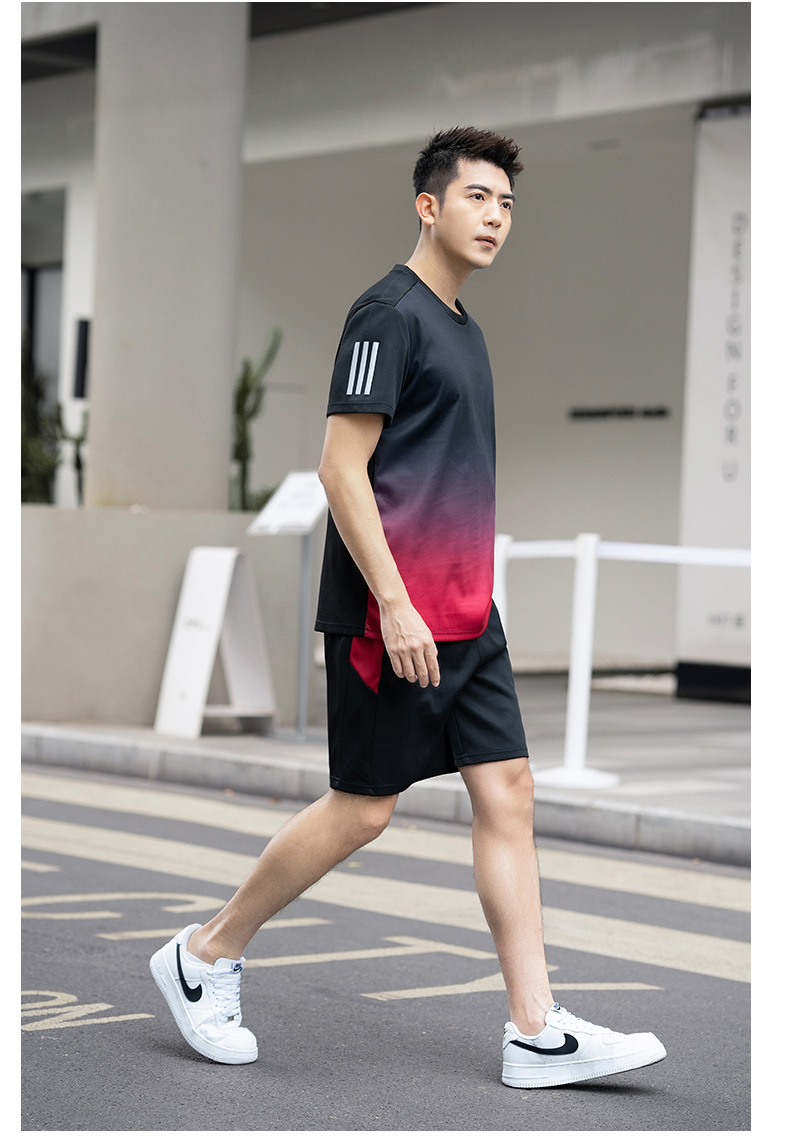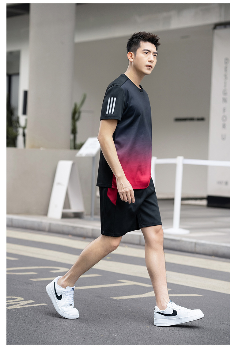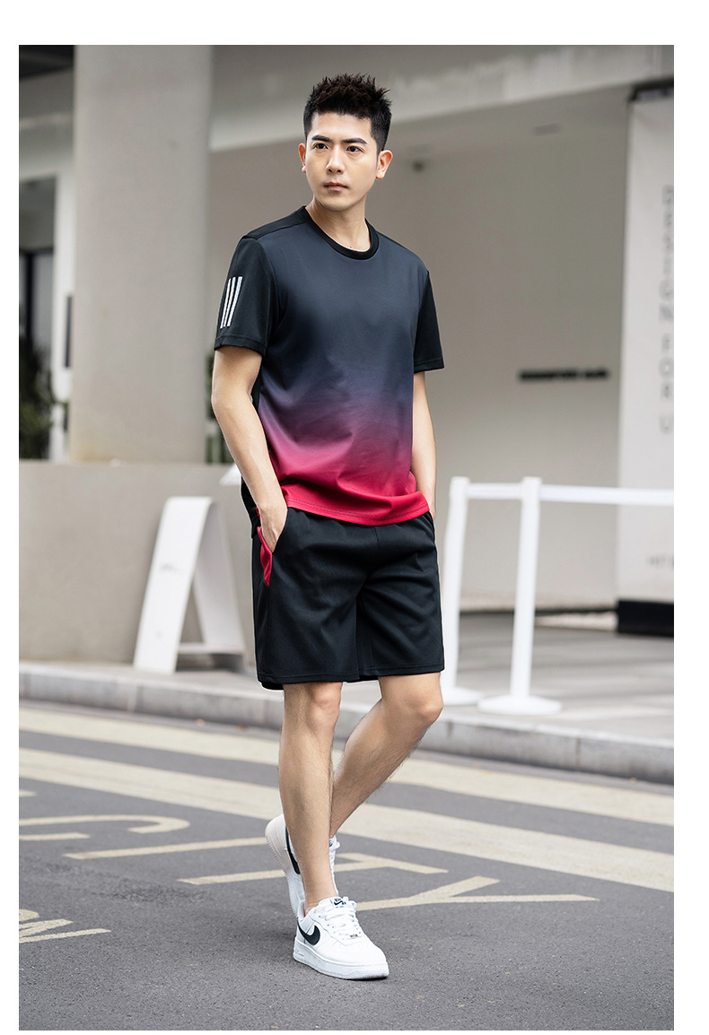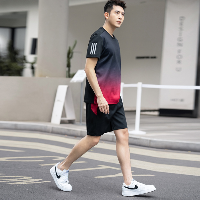 플러스 사이즈 스포츠 세트 남자 2024 여름 뚱뚱한 피트니스 느슨한 빠른 건조 옷 세트 플러스 사이즈 야외 투피스 세트스토어 가기