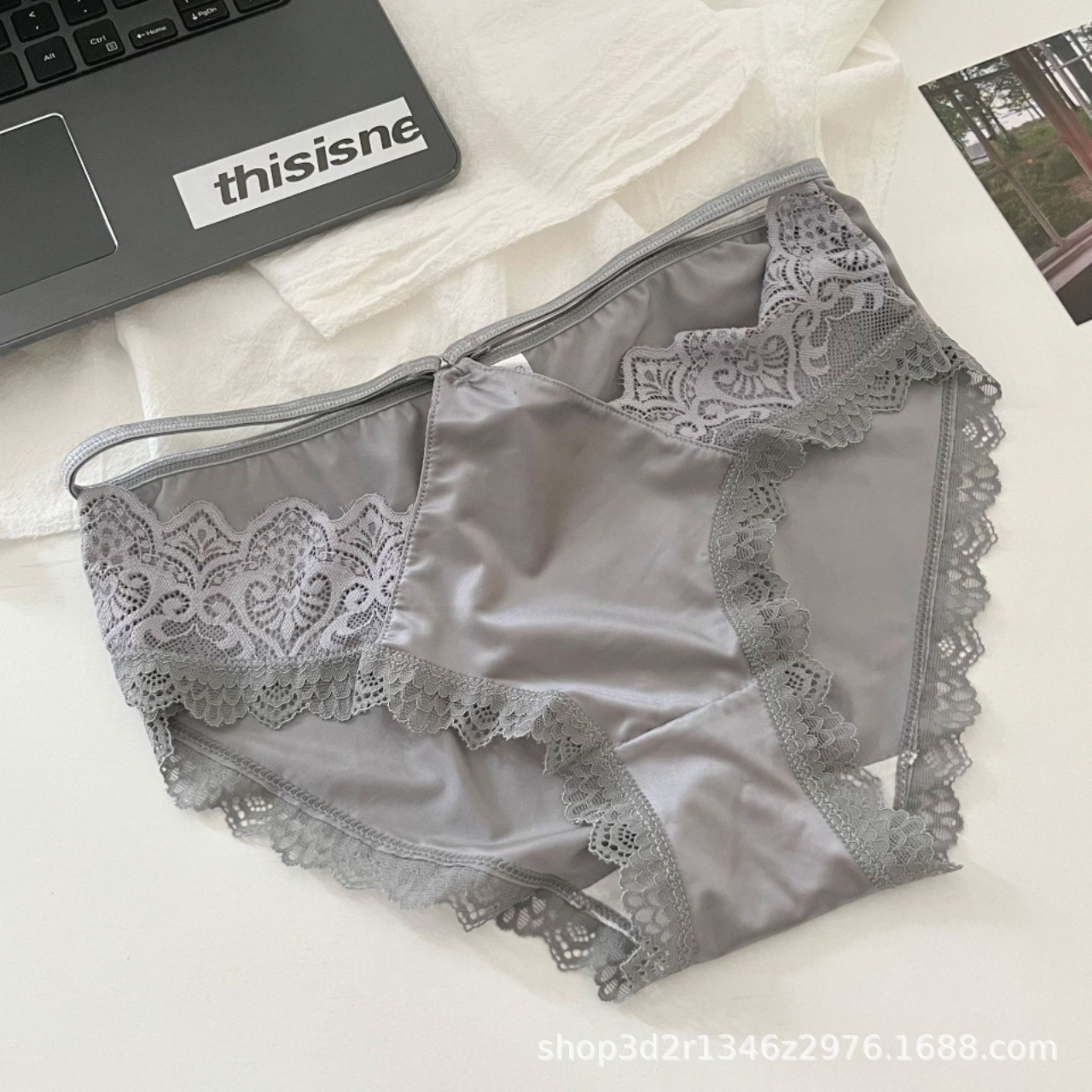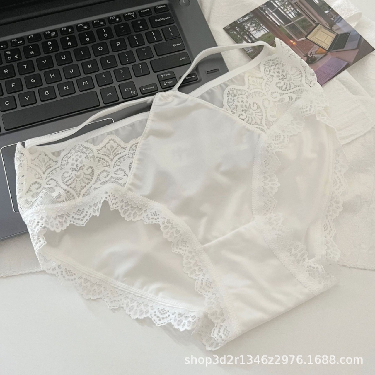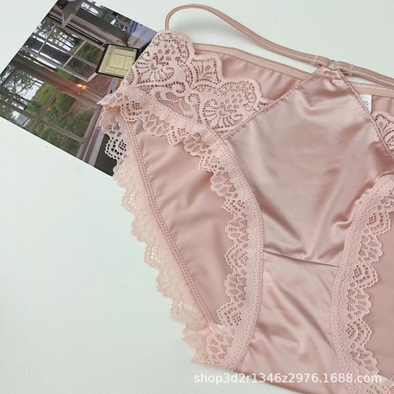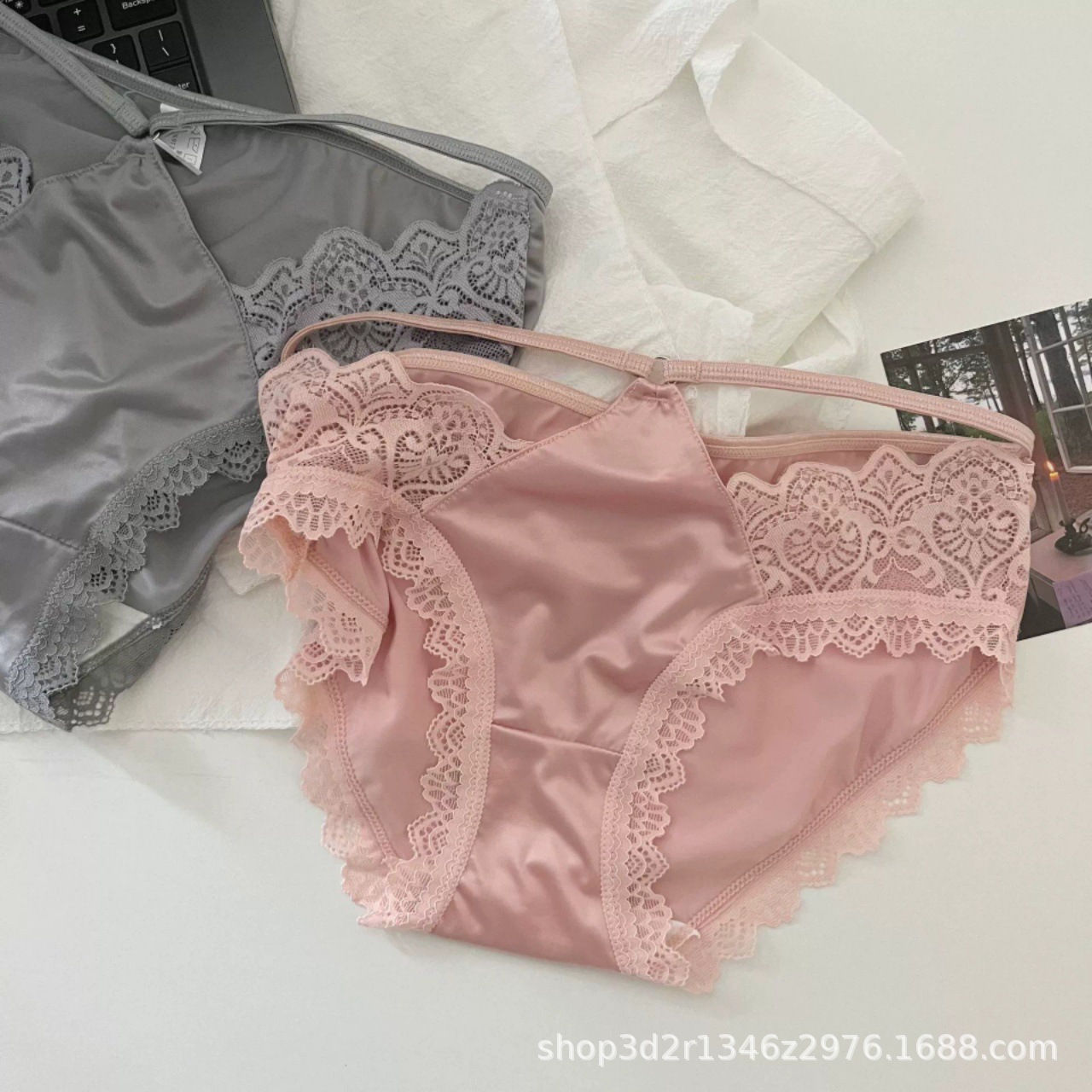 순수한 욕망 스타일 섹시한 아이스 실크 하이 엔드 새틴 속옷 여성의 순수한면 항균 낮은 허리 버클 얇은 벨트 여성용 브리프스토어 가기