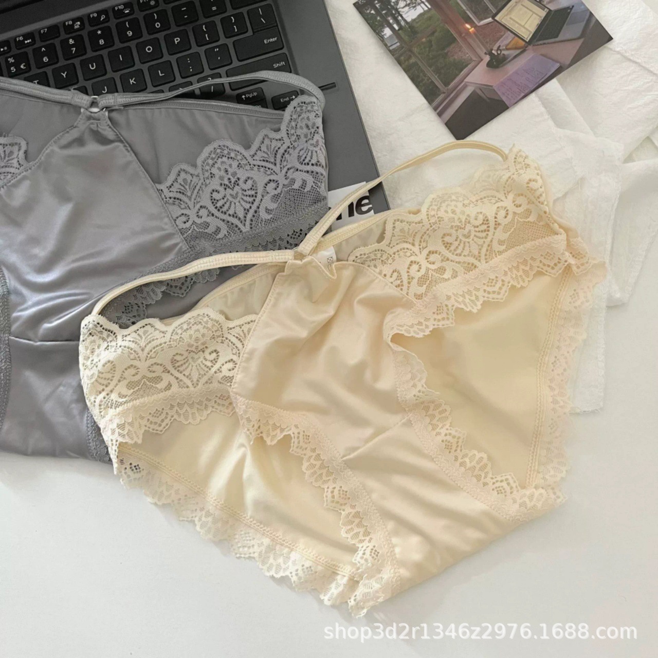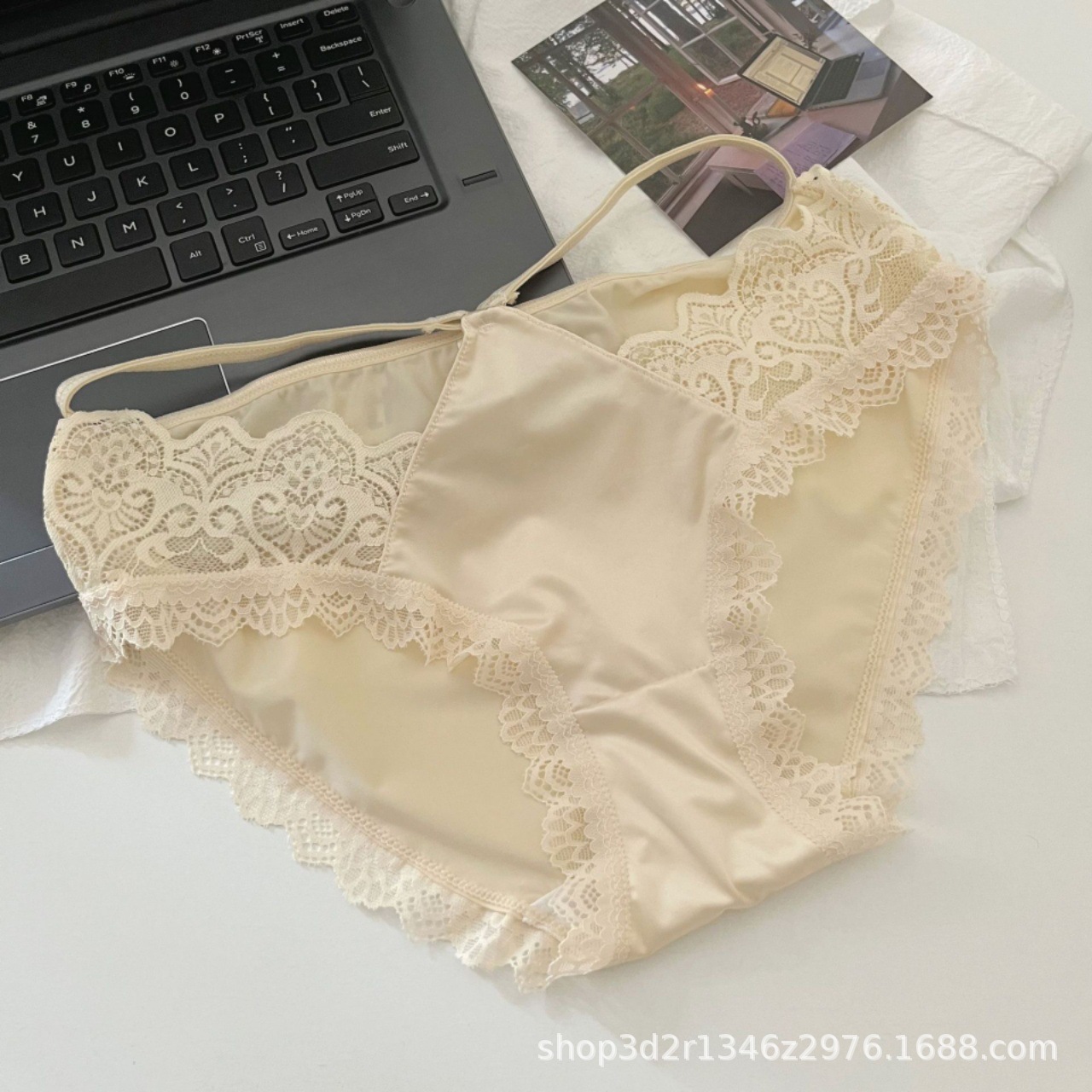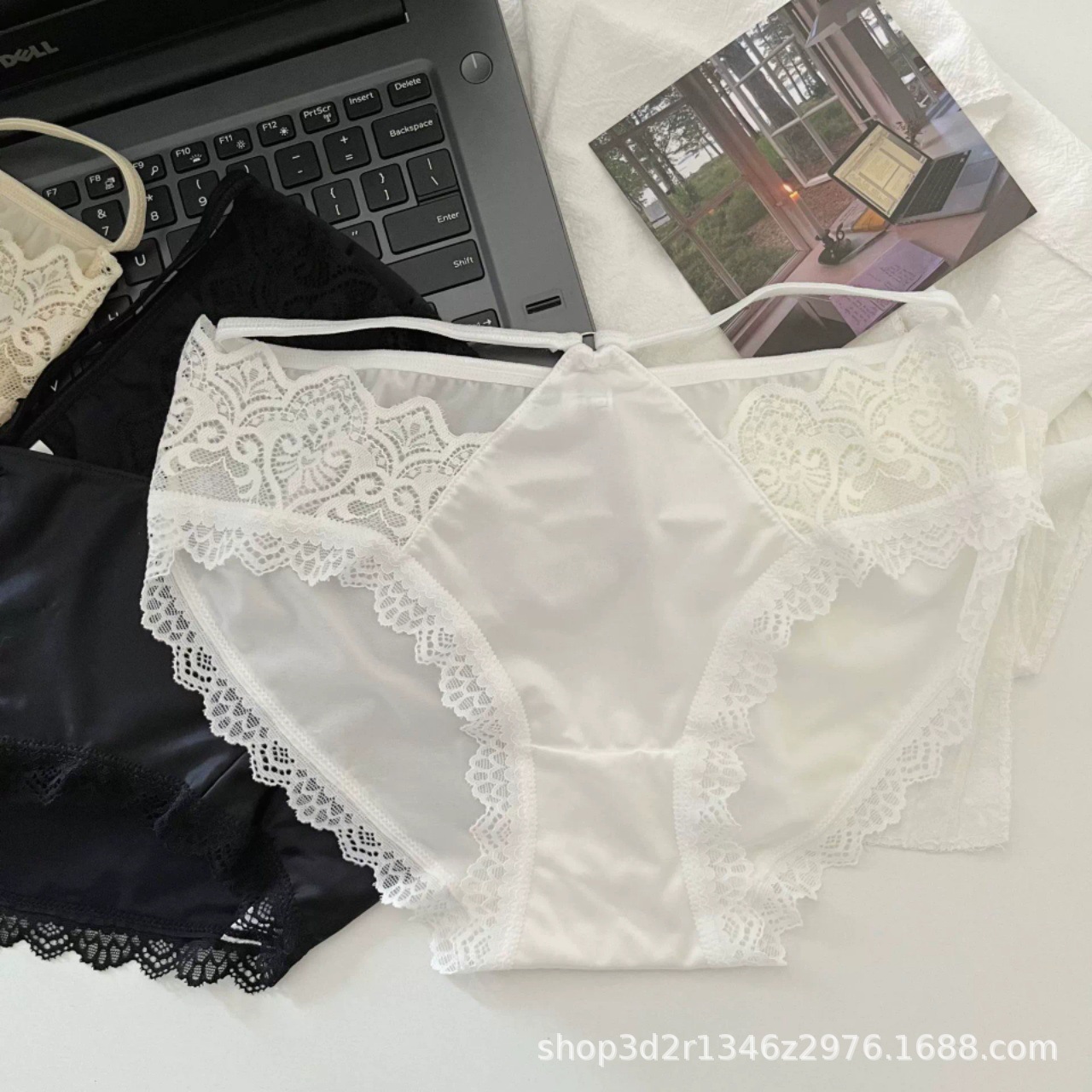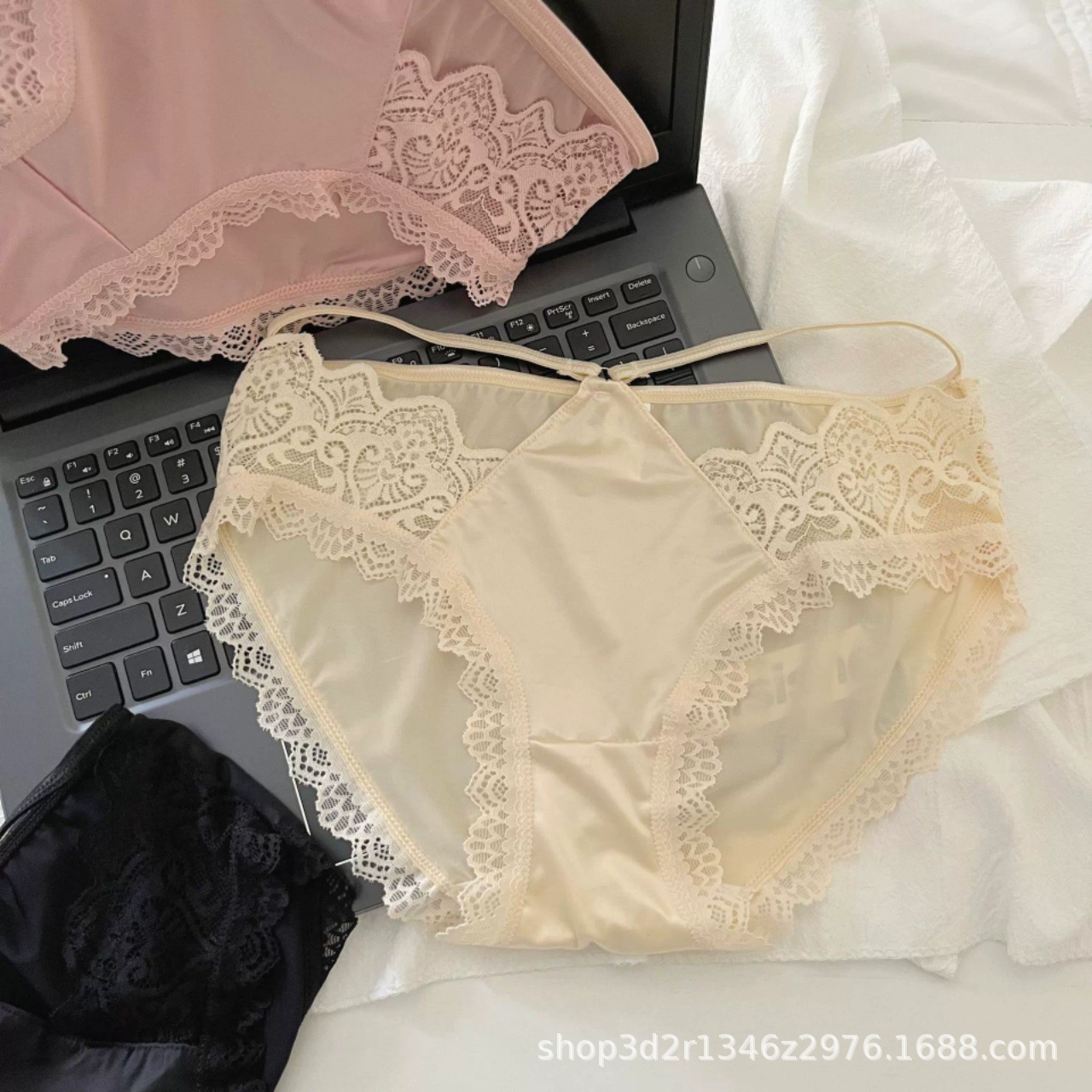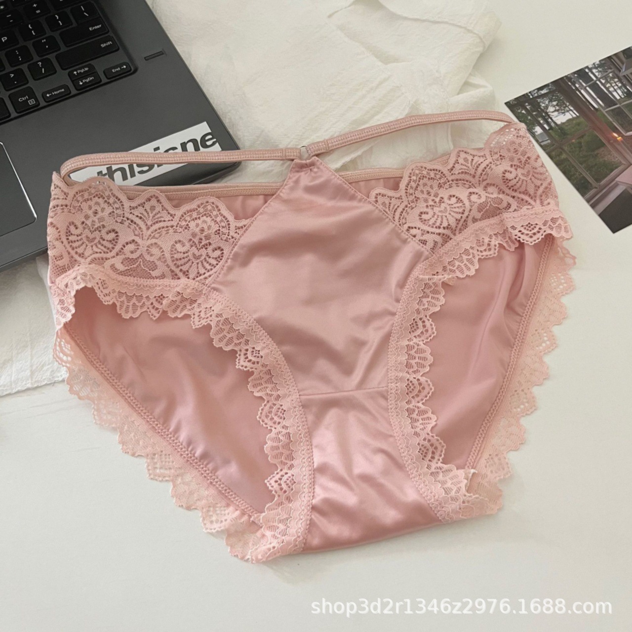 순수한 욕망 스타일 섹시한 아이스 실크 하이 엔드 새틴 속옷 여성의 순수한면 항균 낮은 허리 버클 얇은 벨트 여성용 브리프스토어 가기
