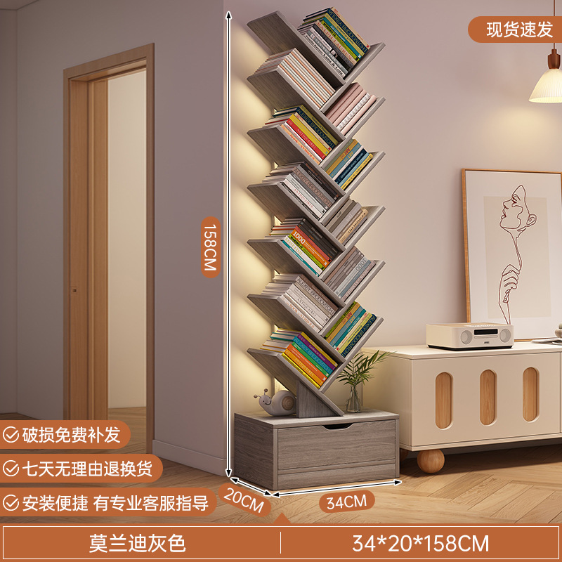 간단한 나무 모양의 작은 책꽂이 바닥 보관 랙 가정용 책장 거실 보관 랙 다층 창조적 인 침실 좁은 캐비닛