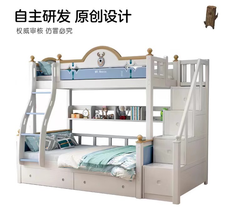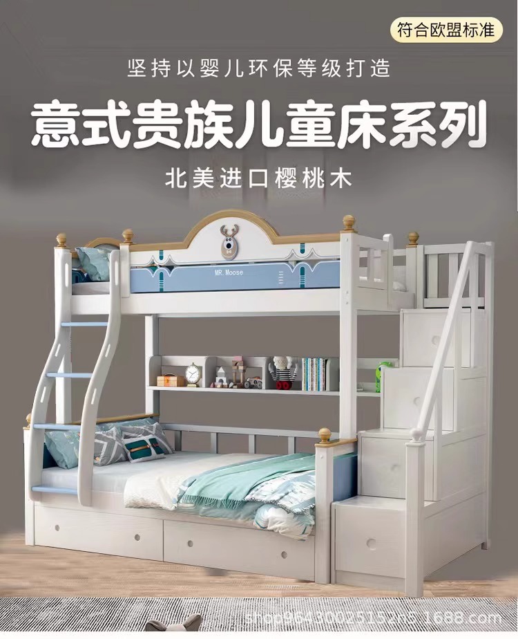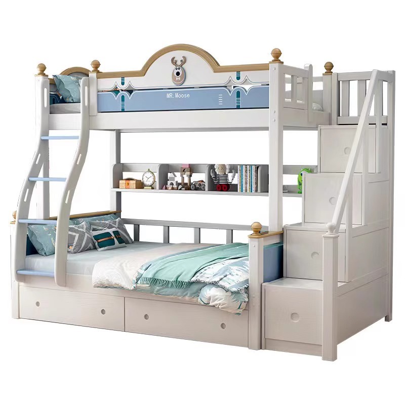 • 상단 및 하단 침대 + 캐비닛 사다리 + 하단 서랍 + 책장