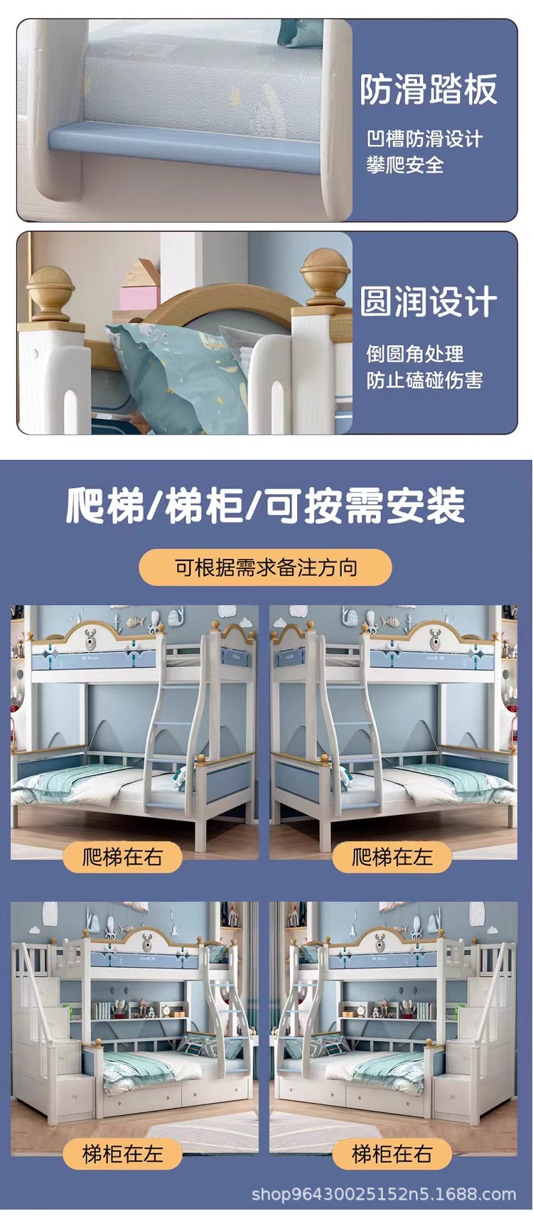 단단한 나무 이층 침대 2 층 높고 낮은 침대 이층 침대 수납 이층 침대 소녀 공주 어린이 침대 소년 이층 침대스토어 가기