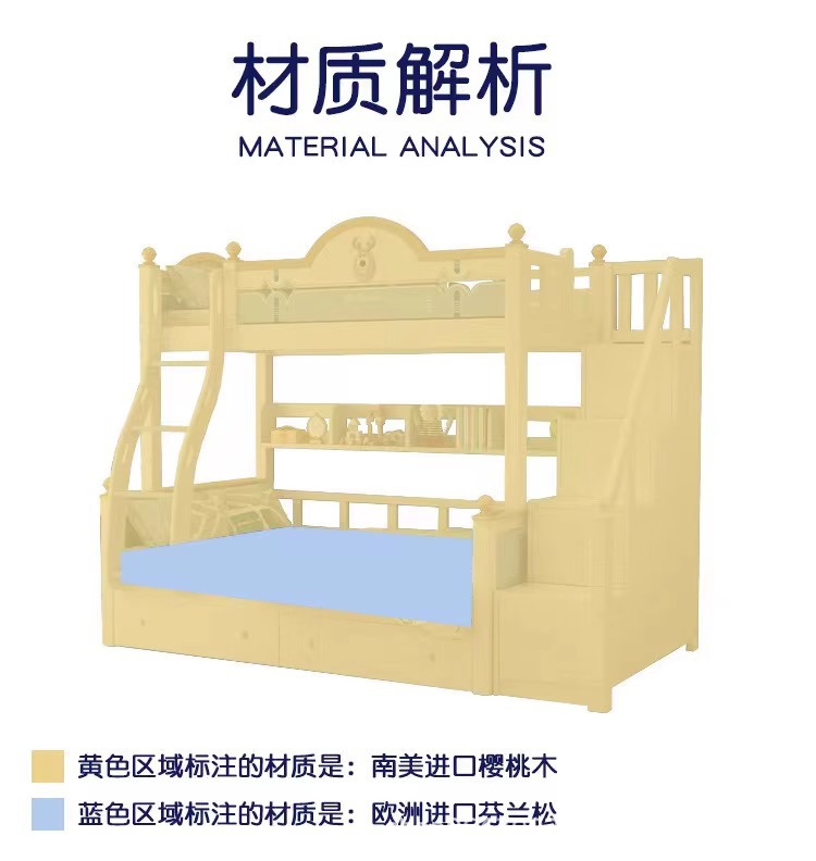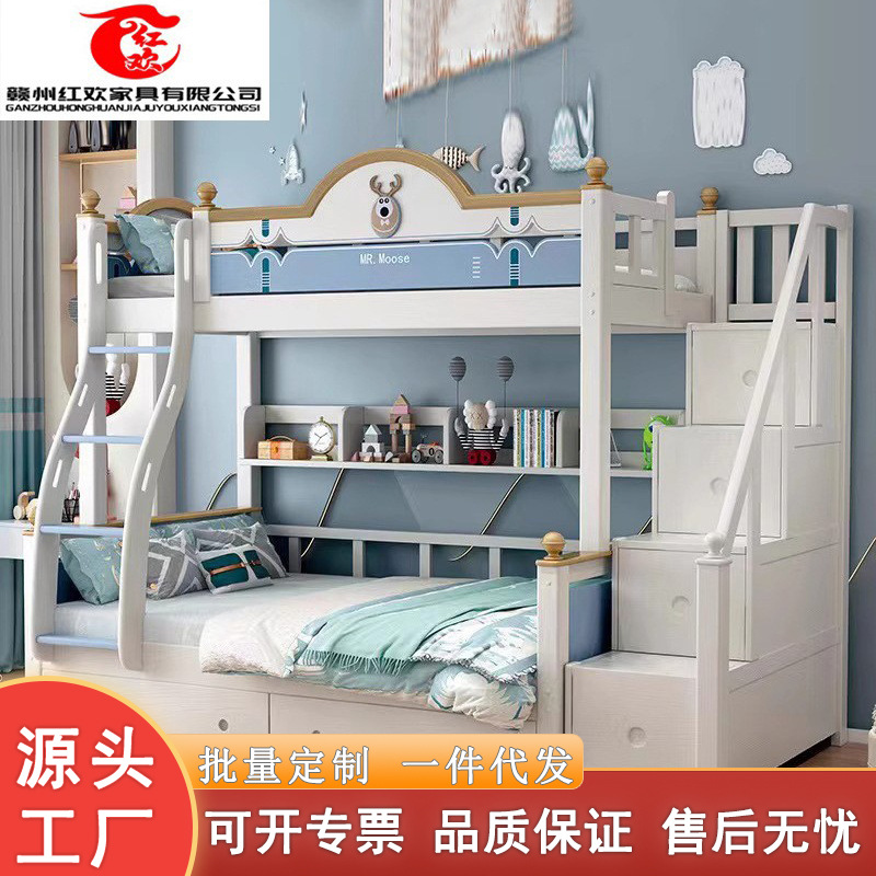 단단한 나무 이층 침대 2 층 높고 낮은 침대 이층 침대 수납 이층 침대 소녀 공주 어린이 침대 소년 이층 침대