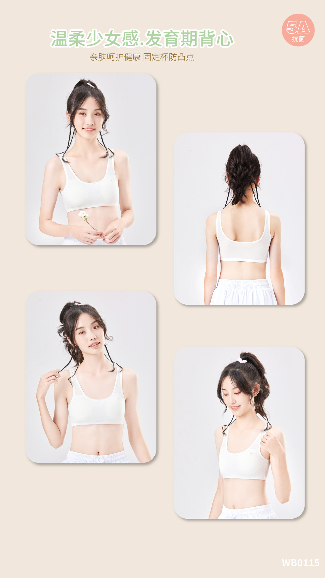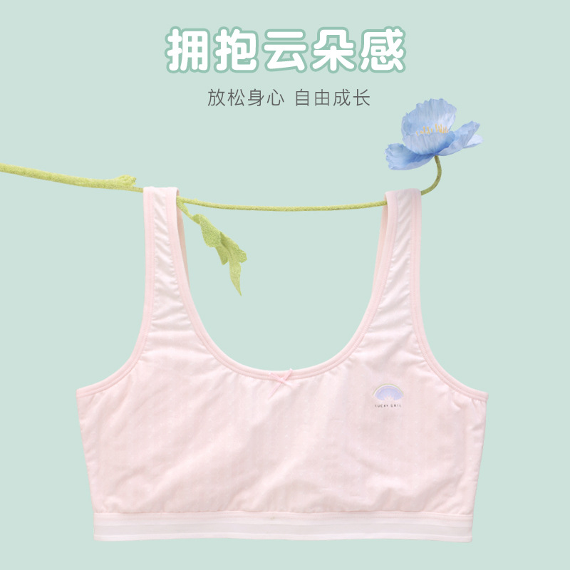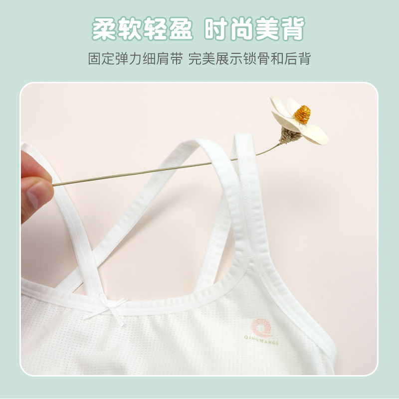 여아 속옷, 아름다운 등 디자인의 순면 브라, 여아 속옷, 발달기 어린이용 편안한 무봉제 속옷, 얇은 조끼형 서스펜더스토어 가기