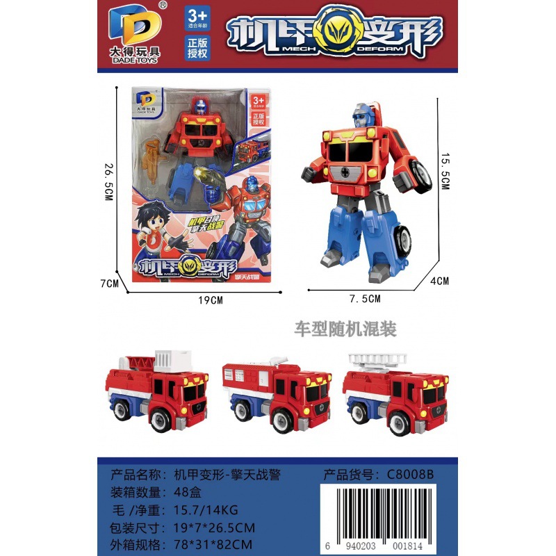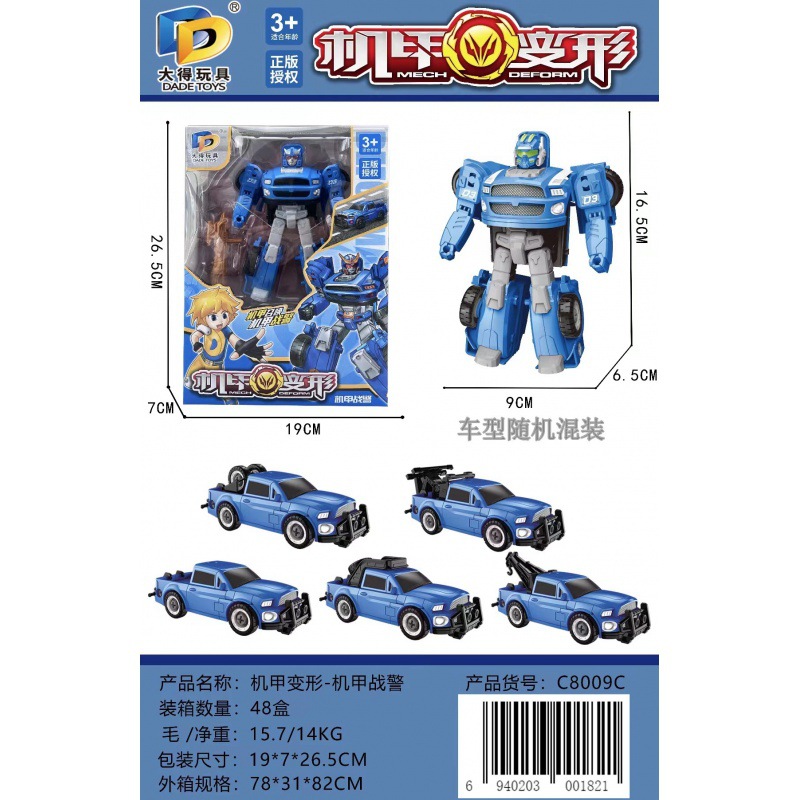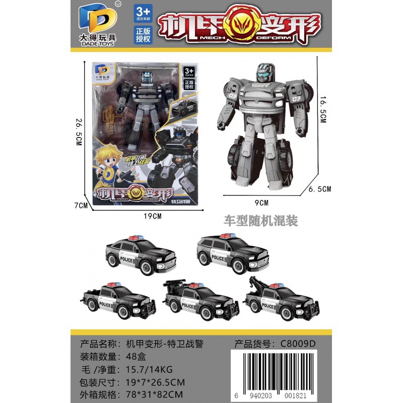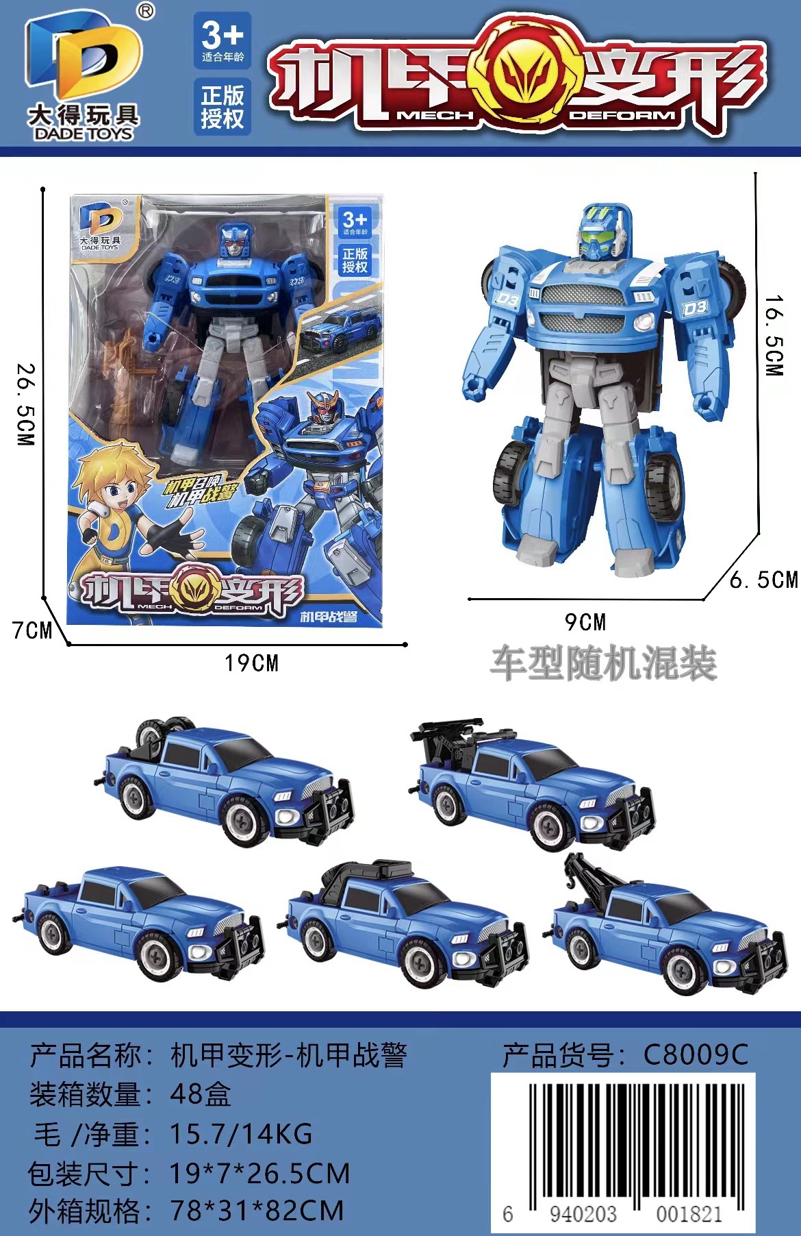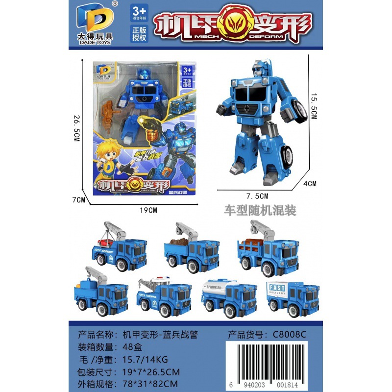 어린이 교육 메카 변형 로봇 블루 군인 전쟁 경찰 칭톈어 전쟁 경찰 변형 엔지니어링 차량 시리즈 소년 장난감스토어 가기