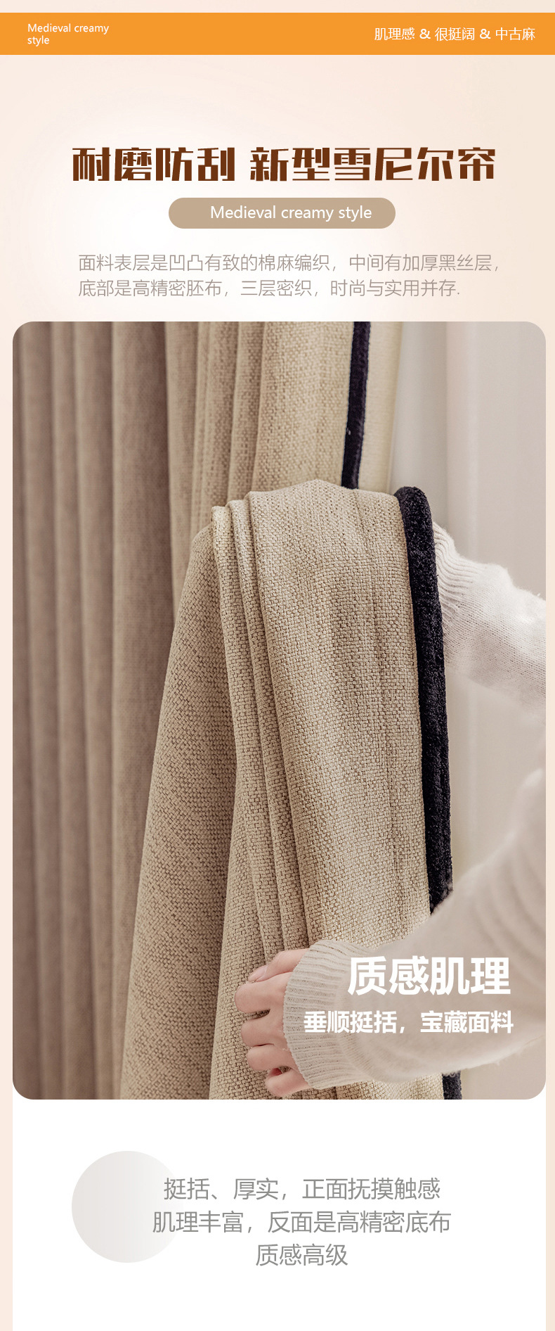 Yansha 검은색 셔닐 커튼 프렌치 메일라드 스타일 차광, 편안하고 피부 친화적인 두꺼운 복고풍 면 및 린넨 커튼