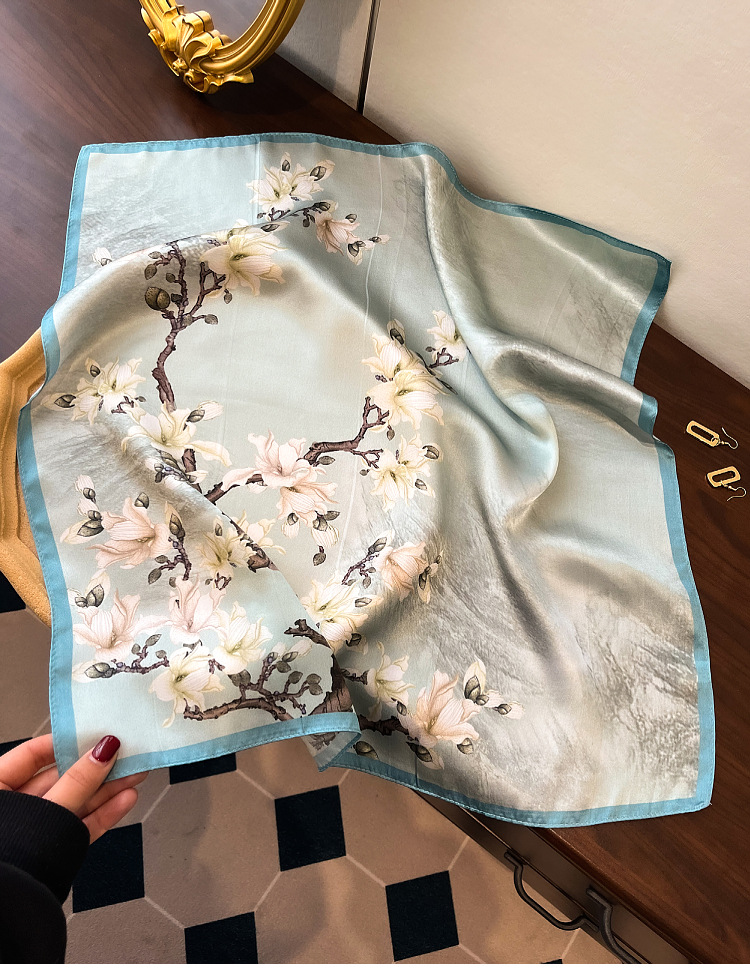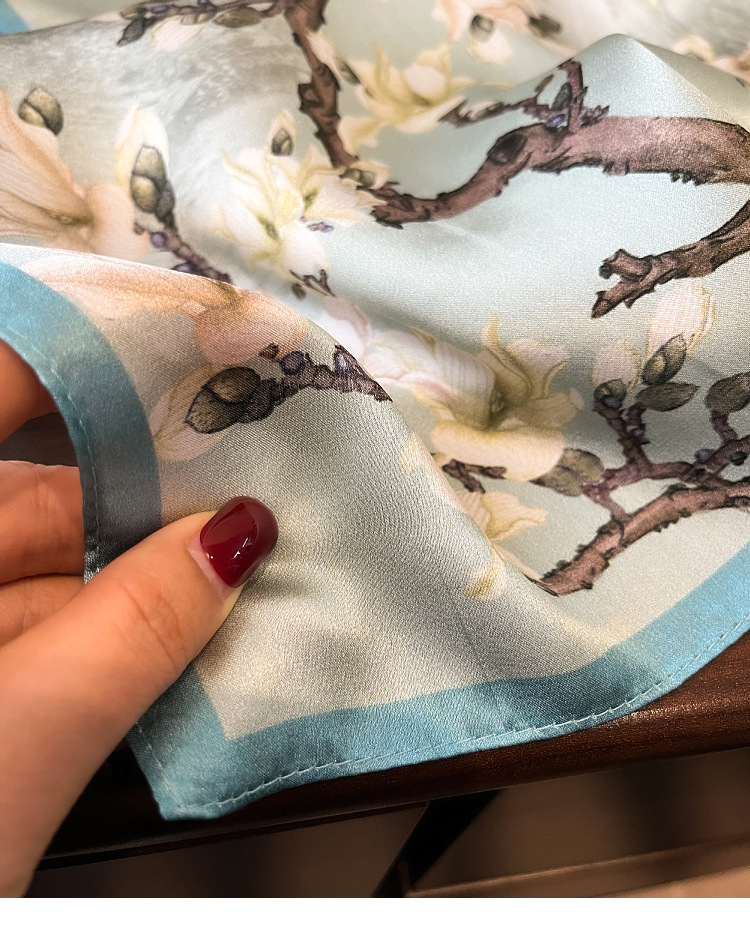 세련된 새로운 중국 실크 스카프 여성 봄 올 매치 국가 스타일 목련 뽕나무 실크 스카프 우아한 53 작은 스카프