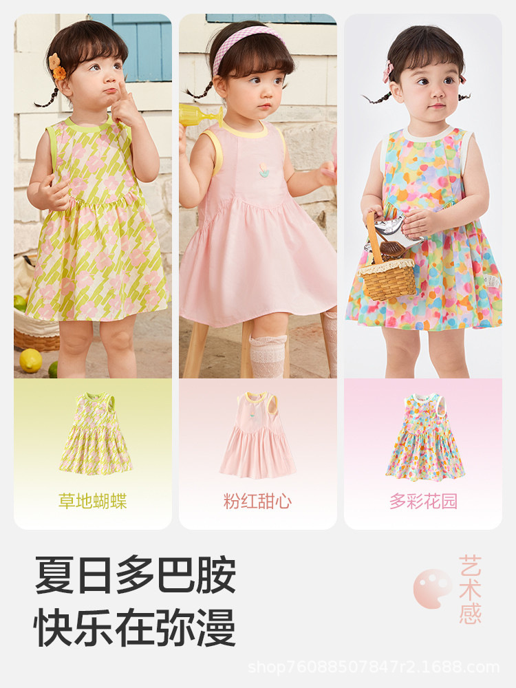 소녀의 원피스 아기 공주 원피스 아기 치마 소녀의 2024 봄과 여름 새로운 어린이의 얇은 순수한면 서양식스토어 가기