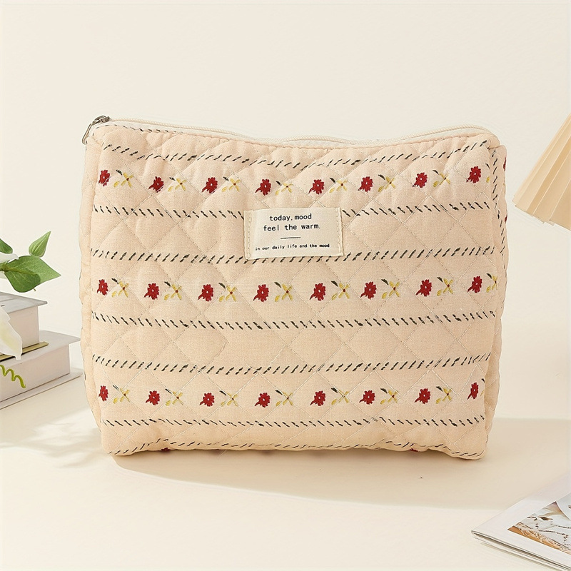 휴대용 대용량 화장품 가방 작은 꽃 저장 휴대용 퀼트 면 작은 신선한 메이크업 보관 가방 조직 가방
