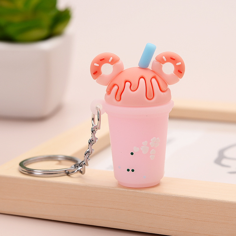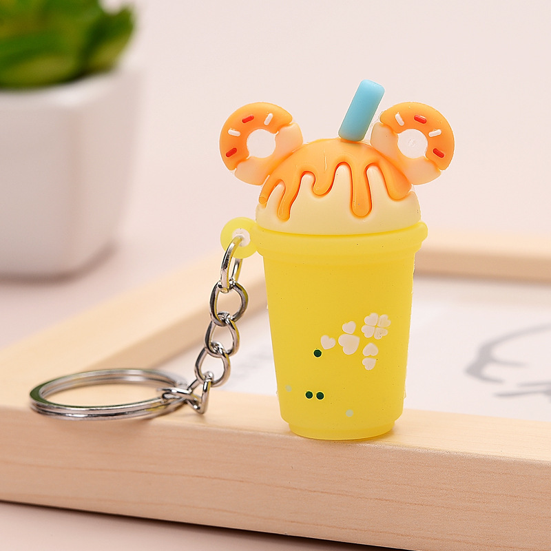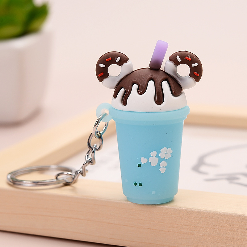 유행 도넛 우유 차 작은 선물 PVC 부드러운 접착제 귀여운 우유 차 컵 키 체인 공장 도매 학교 가방 펜던트스토어 가기