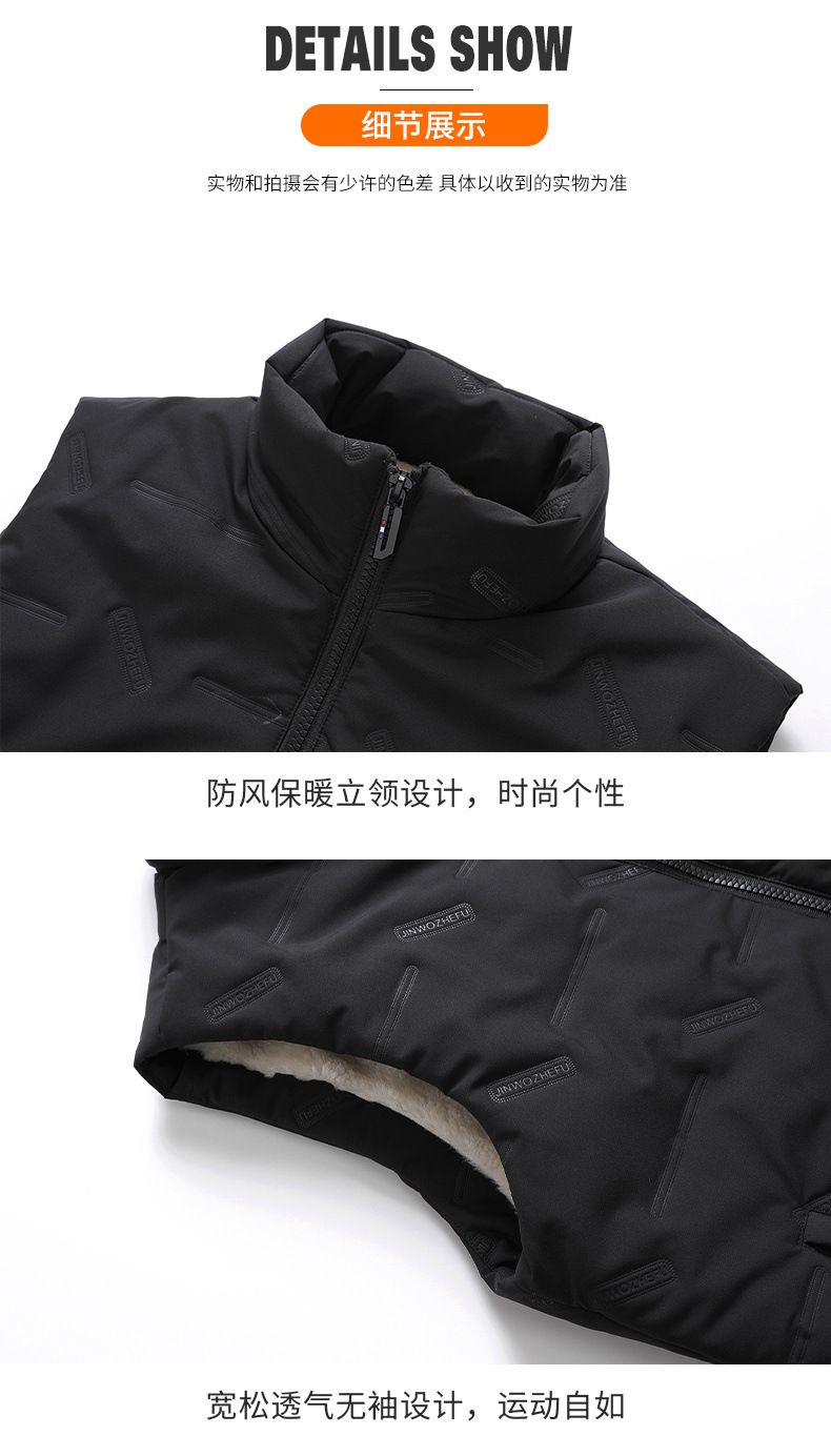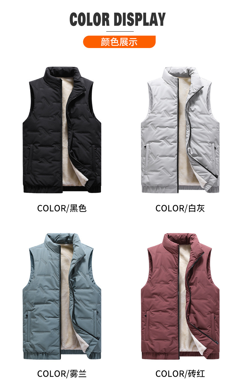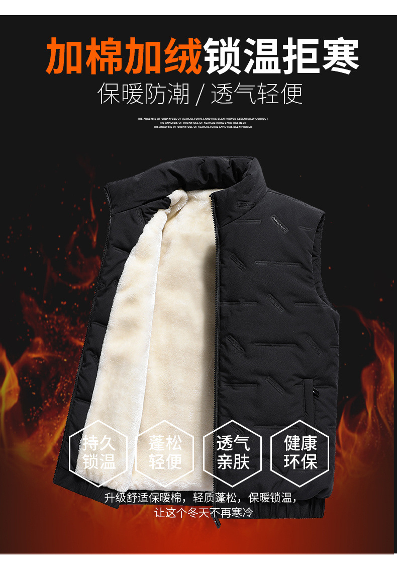 가을 겨울용 벨벳 안감 두꺼운 스탠드 칼라 면 조끼 남성용 민소매 재킷 보온 조끼 남성복 OEM 맞춤 제작스토어 가기