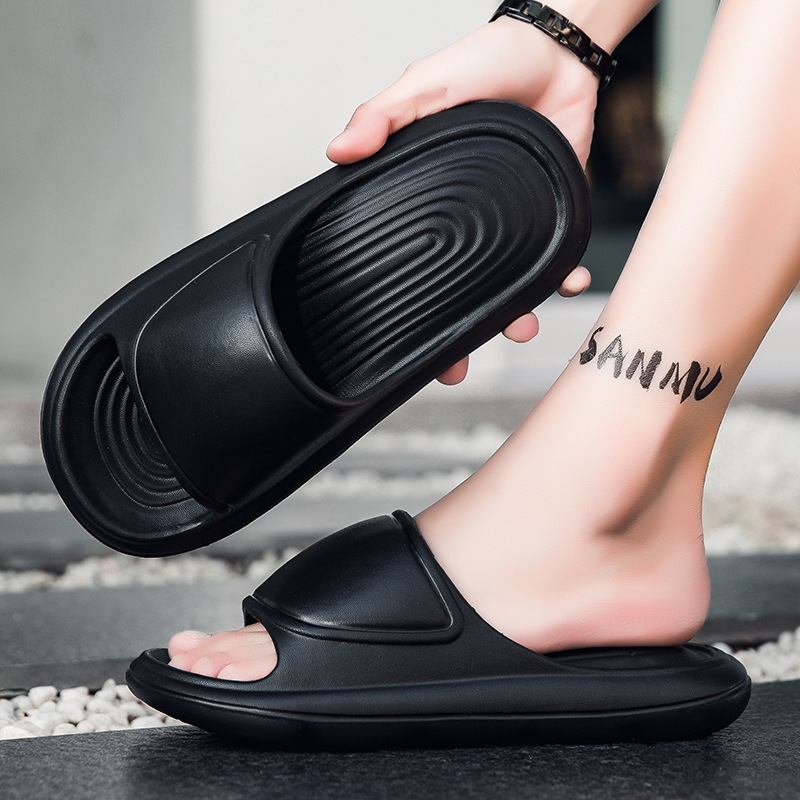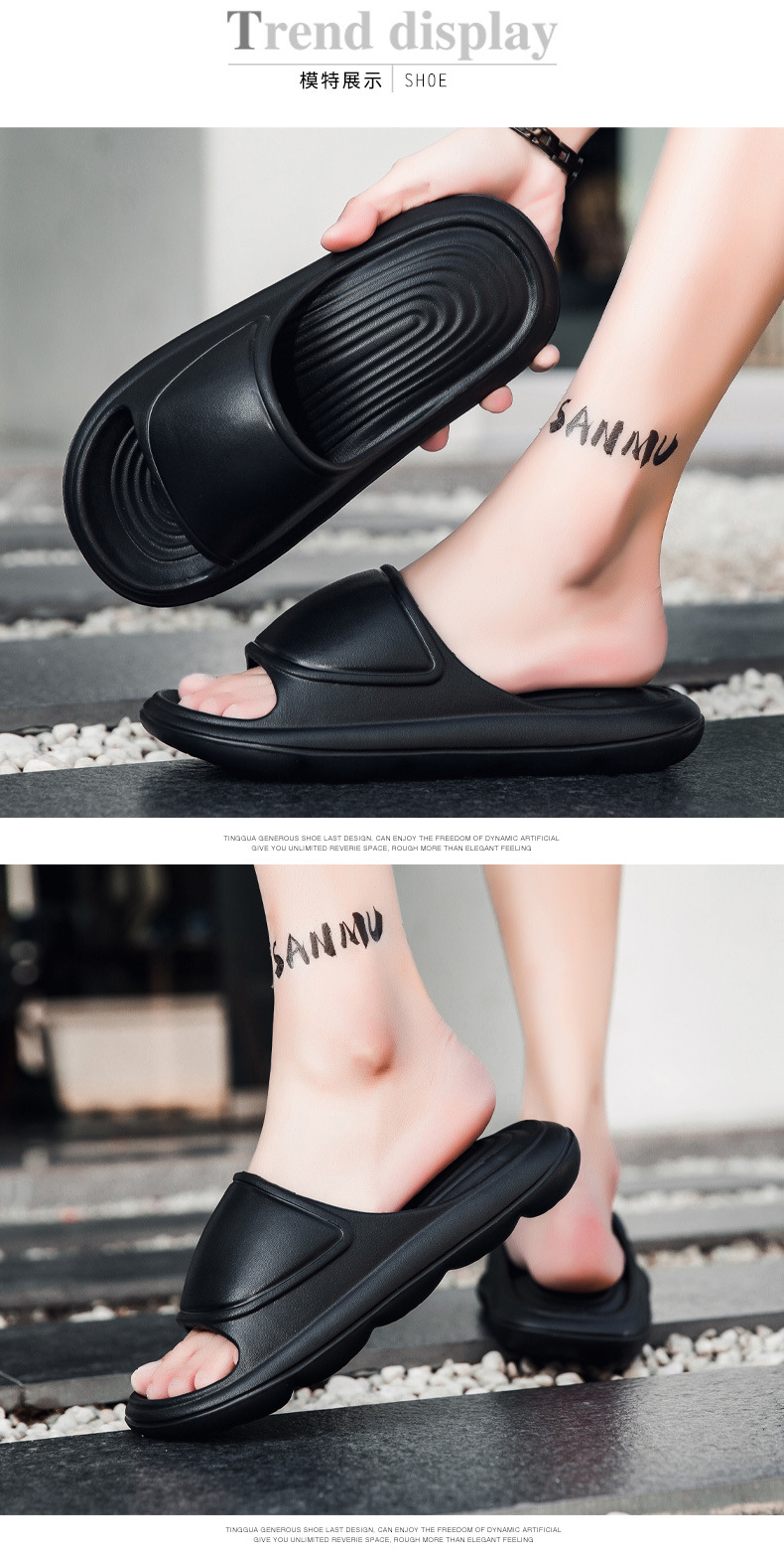 두꺼운 밑창 커플의 슬립 온 슬리퍼 남성 여름 홈 욕실 목욕 슬리퍼 부드러운 밑창 야외 세련된 슬리퍼
